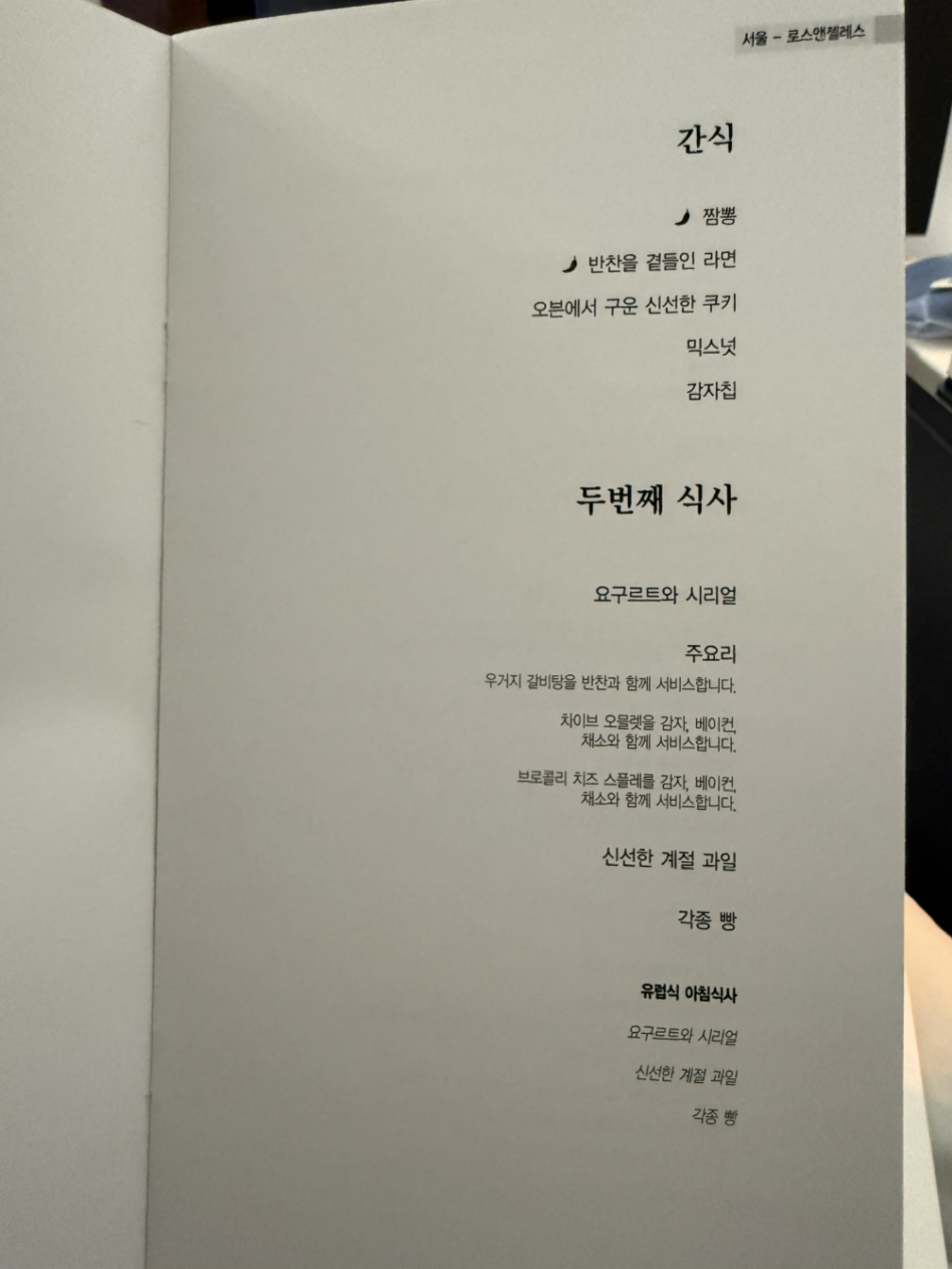 저녁 8시 출발 편이라 시간적으로 여유가 있었다. 공항까지는 택시로 한 시간이면 가기 때문에 오전에 좀 여유를 부릴 수 있었다. 나는 모닝캄 회원이라 프레스티지 라운지가 이용이 가능해서, 일등석을 예약하기 전에도 라운지에 미리 들어가서 시간을 보낼 계획을 세우고 있었다. 일등석 라운지는 뷔페가 아니고 정식으로 한 상이 나온다고 해서 더 기대가 되었다. 운 좋게 일등석을 예약해 퍼스트클래스 라운지를 이용할 수 있었다.