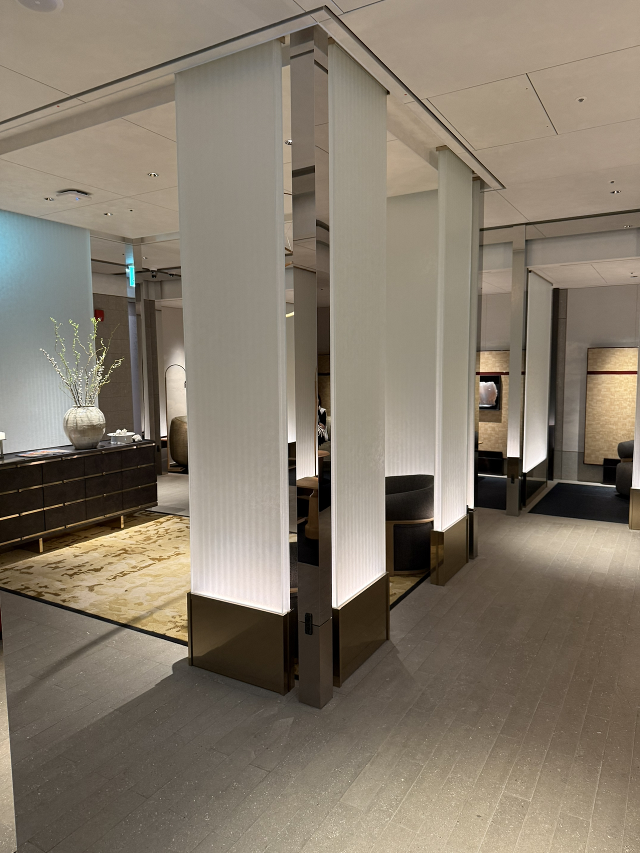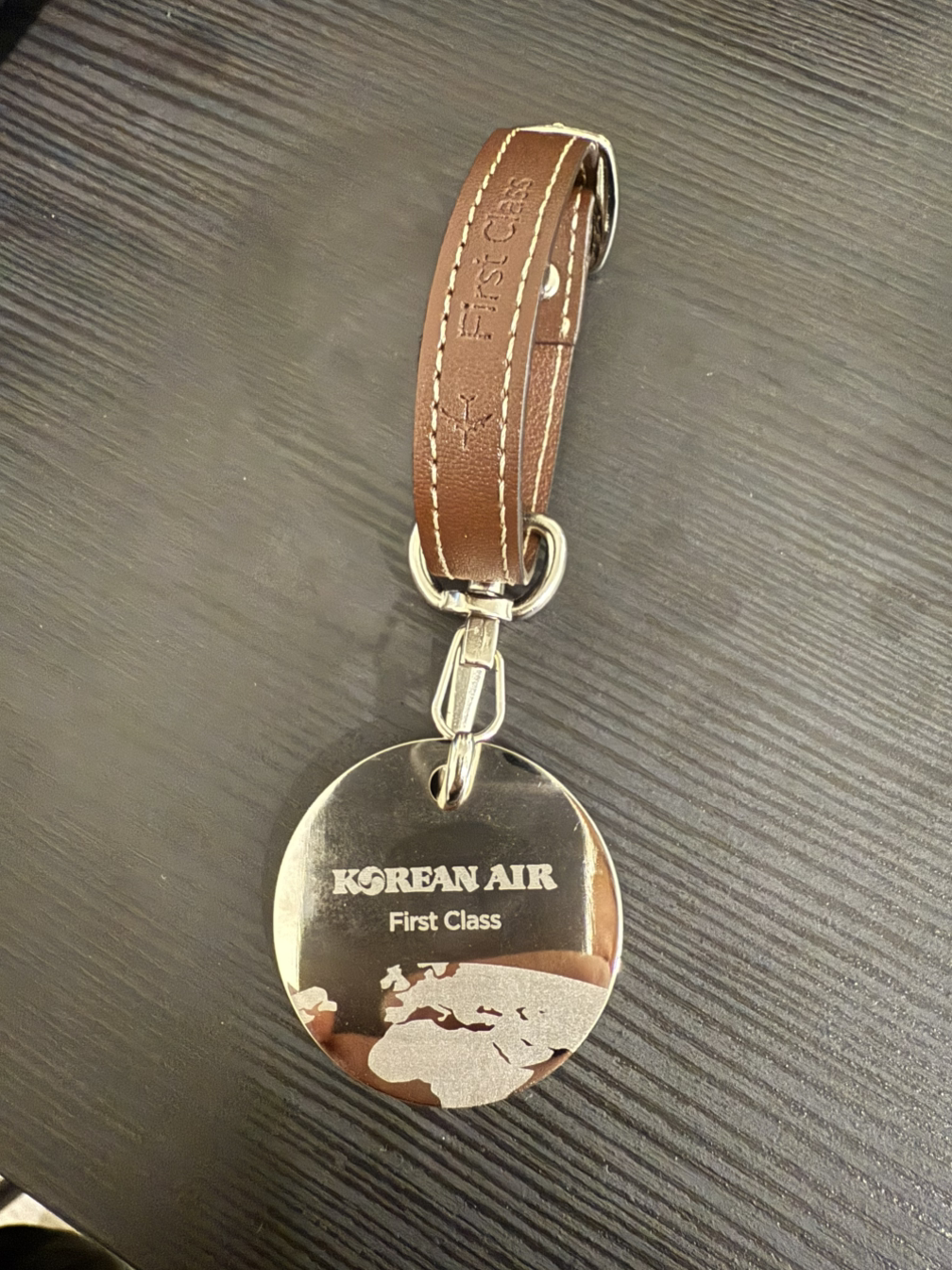 이미그레이션은 일등석이라고 구분되어있지 않았다. 출국장에 똑같이 줄을 선 후 심사대를 통과했다. 인천공항에 시스템이 바뀐 이후에 수속시간이 길어졌다고 하더니 정말이었다. 평소보다 보안검색대가 덜 운영 중이었고, 훨씬 오래 걸렸다. 마치 유럽에서 출국하는 것 같았다. 간단하게 필요한 것들을 사고 퍼스트클래스 라운지로 입장했다. 입장 시 티켓을 보여주니 일등석라운지 서비스라며 수하물에 달 수 있는 열쇠고리를 제작해 주겠다고 했다. 이름과 연락처가 포함되어 있는 금속재질의 열쇠 고리었다.