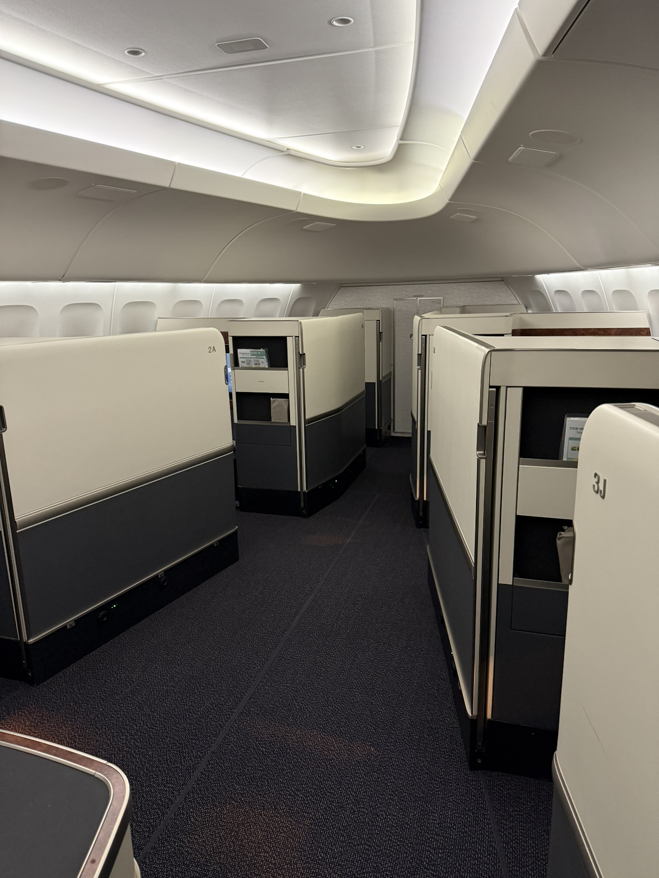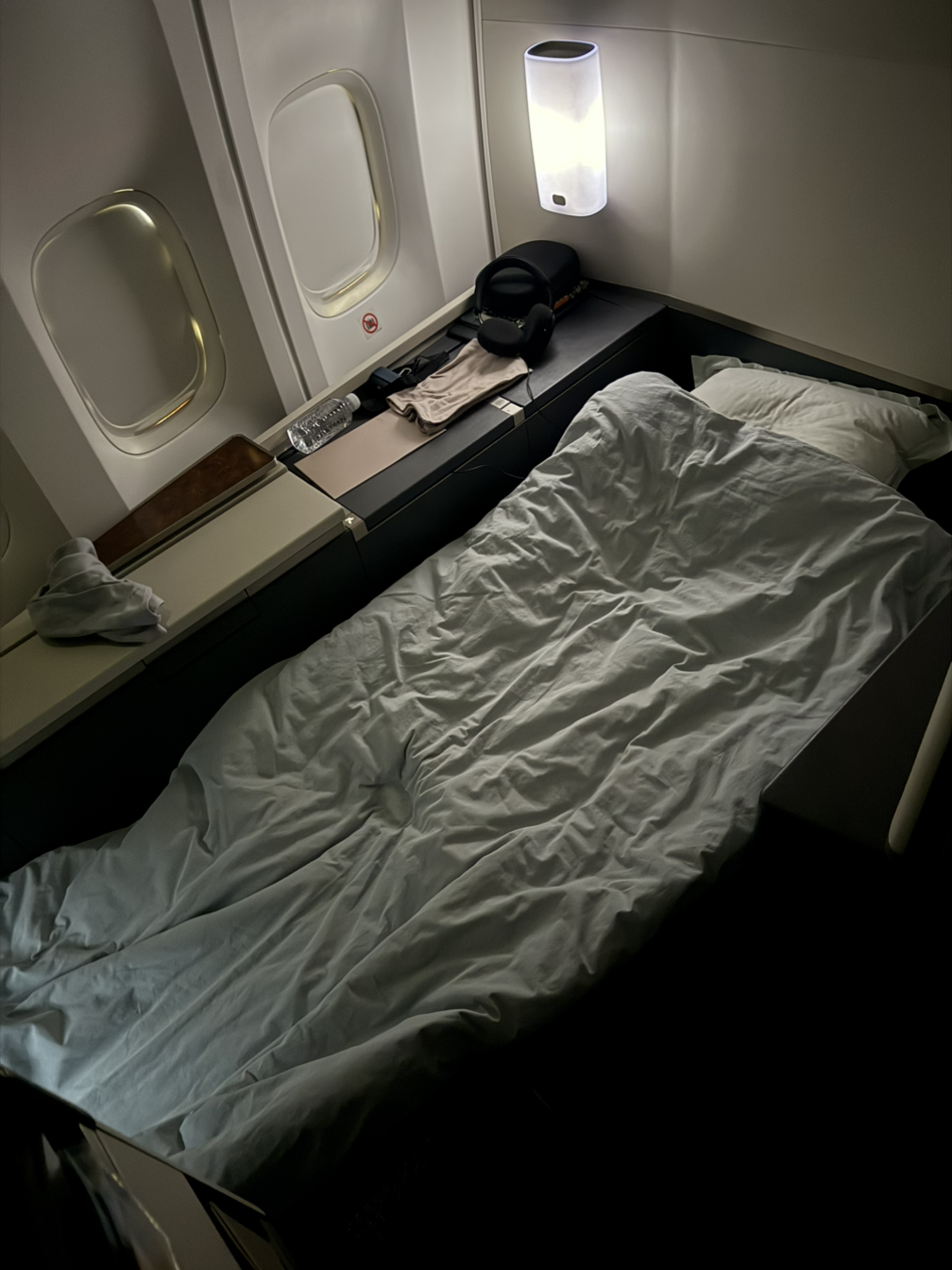 출발시간이 조금 더 지연되었다. 라운지에서 세라젬에 누워 몸을 좀 풀고 있다가 시간에 맞춰 비행기를 타러 이동했다. 연착되어 이미 탑승구 앞에는 고객들로 인산인해를 이루었다. 그러나 일등석 고객은 제일 앞에 가기만 하면 바로 들어갈 수 있었다. 모든 게 일등석 먼저, 일등석 위주였다. 체크인할 때 옆자리를 달라고 했더니, 이 비행기는 신형모델로 옆자리가 없다는 게 무슨 말인지 이해가 됐다. 자리가 아니고 방이 있었다. 그 큰 비행기에서 일등석은 단 여섯 자리 었고 그때만큼은 뭔가 내가 특별한 사람이 된 것 같은 착각을 했다.