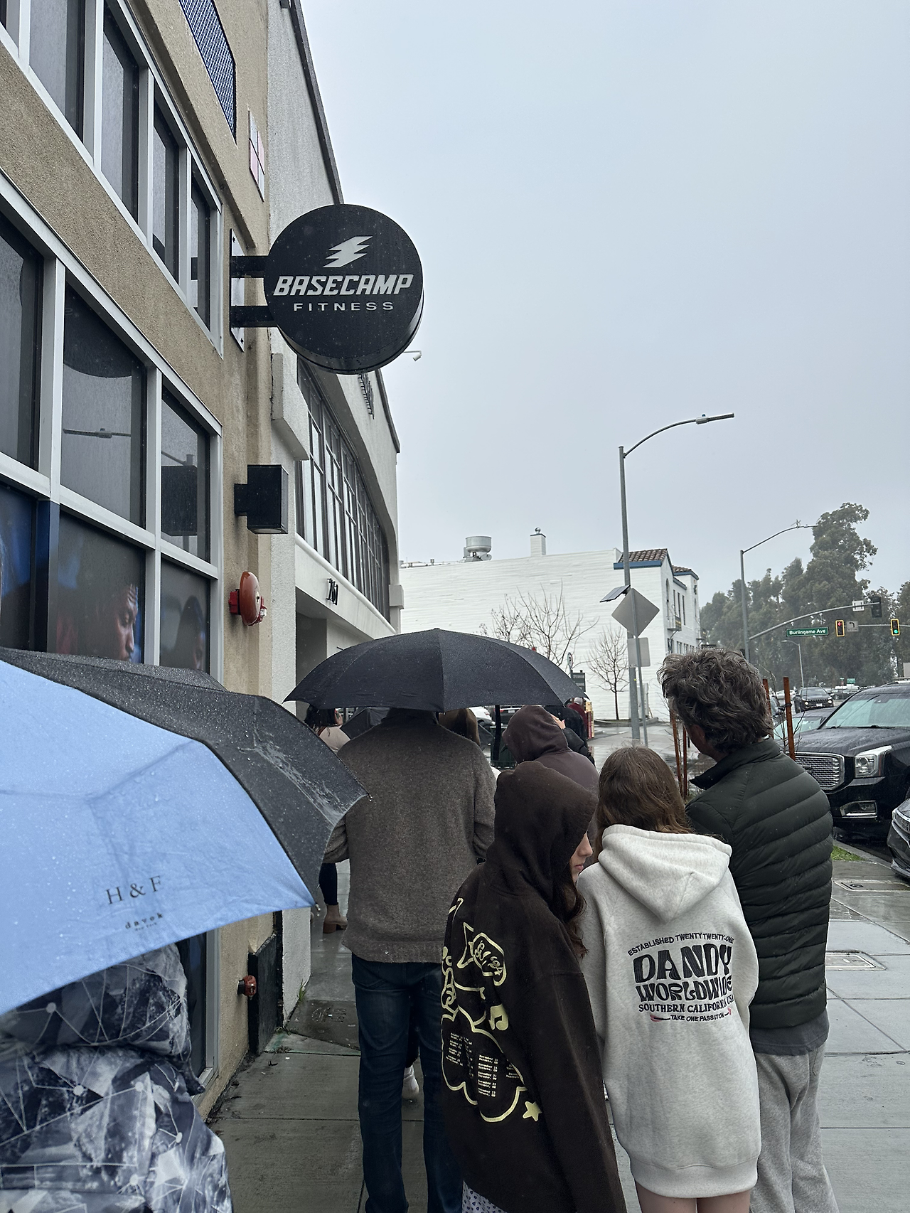 일분도 채 지나지 않아 짜증이 몰려왔다. 일단 차를 가지고 나와서 비를 맞을 줄 몰라 대충 걸치고 나와서 비를 맞으니 추웠다. 표정이 굳어졌다. 카페까지 걸어가니 줄이 그새 더 길어졌다. 아무리 못해도 삼십 분은 기다려야 하는 것처럼 보였다. 비를 피하는 곳은 전혀 보이지 않았다.