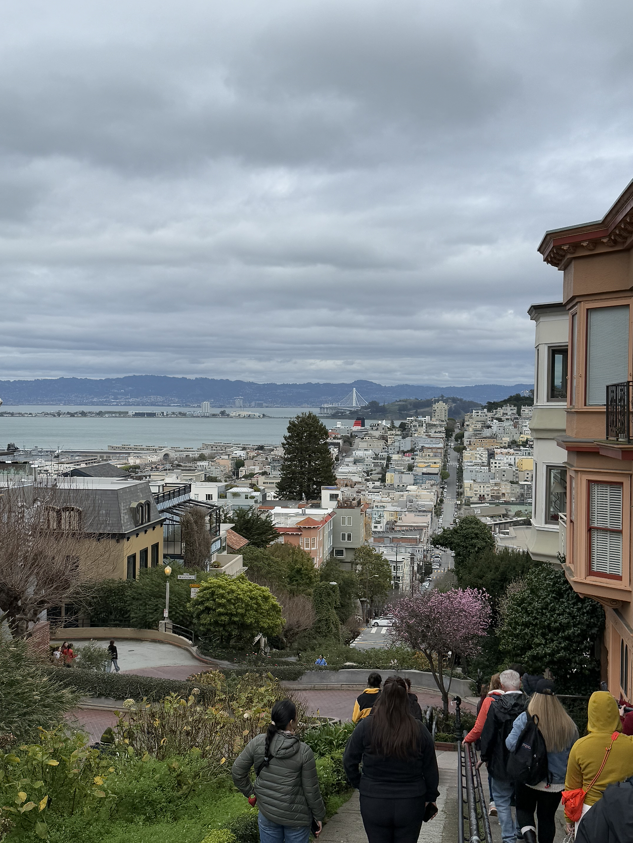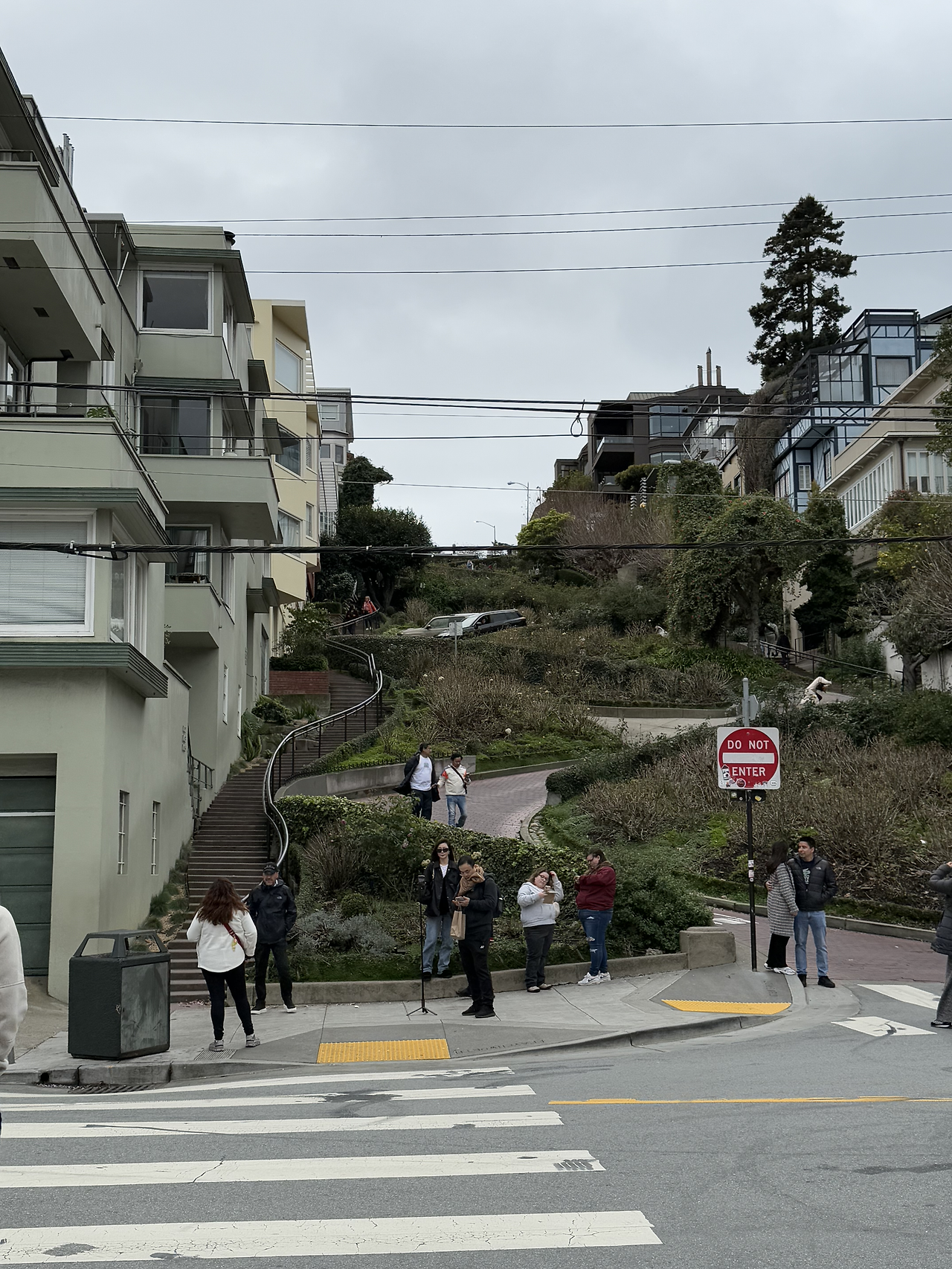 첫 번째 행선지로 롬바드 스트릿에 도착했다. 샌프란 시내는 언덕길들을 따라 있는 도시가 있는 것으로 유명하다. 언덕을 올라갔다 내렸다가 하는 시내길과 관광객을 실어 나르는 트램은 꽤나 낭만적이었다. 특히 롬바드 스트릿은 영화나 애니메이션에 자주 등장하는 장소인데 최근에는 인사이드 아웃에서 보았던 것 같다.