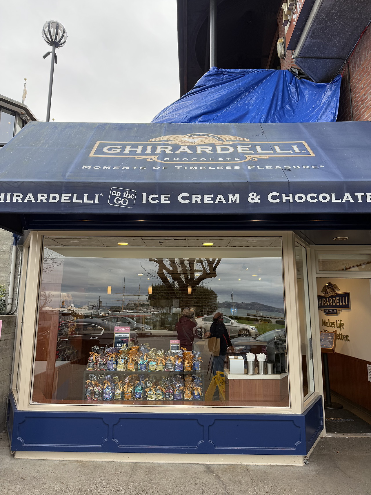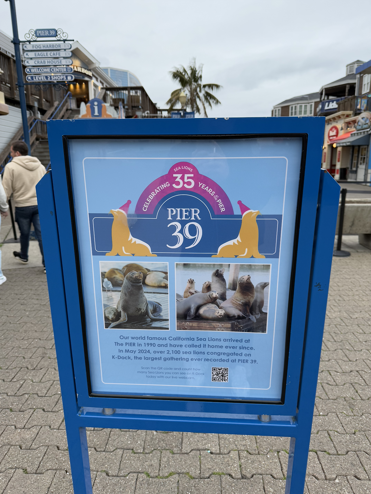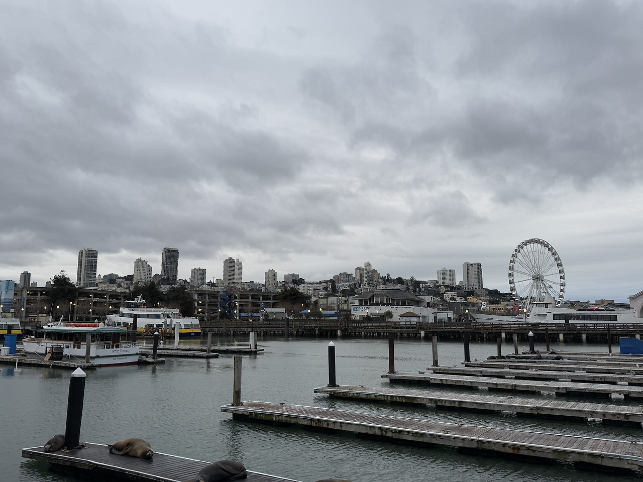 짧은 구경을 마치고 금문교가 보이는 마리나그린이라는 곳으로 갔다. 흐린 날씨 탓에 금문교는 을씨년스럽기 그지없었다. 우버를 타고 샌프란의 명물인 기라델리 초콜릿 샵에서 내리고는 잠깐 커피를 마시며 쉬었다. 샌프란엔 여러 Pier들이 있는데, 그중에 특히 Pier39가 유명하다. 바다사자들이 데크에 머물며 휴식을 취하고 있는 것도 매우 귀여웠다. 여기만 유독 유명해진 이유에 대해 나는 우연히 그랬을 것이라는 의견을, 아내는 여기가 아마 유동인구가 가장 많았던 항구가 아니었을까 하는 추측을 내놓았다.