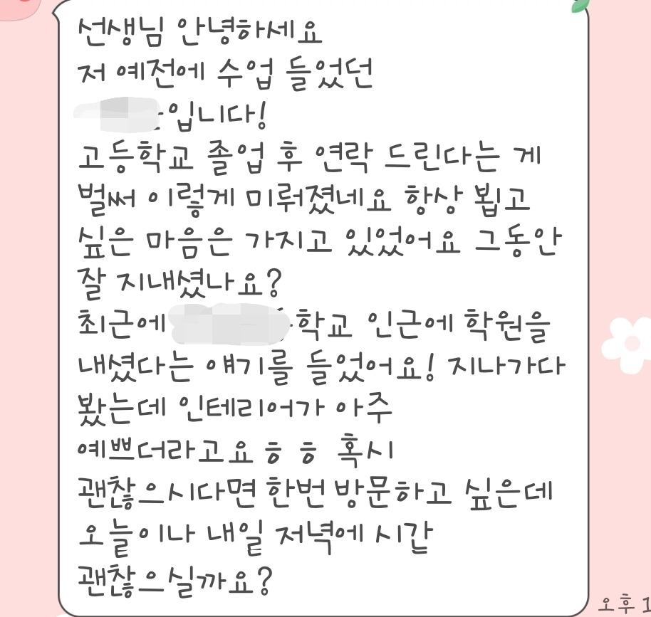 초등학교 3,4학년 무렵부터 나랑 수업했던 아이가 갑자기 연락을 해 왔다.