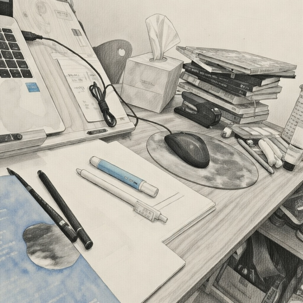 지난 2년 간 나는 앉아서 손 뻗으면 닿을 곳에 필요한 것들을 두고 사용하며 의자에서 엉덩이를 거의 떼지 않는 생활을 했다. 최소한의 활동을 제외하고는 거의 책 앞에 앉아 있었다. 그게 제일 쉽게 마음을 가라앉힐 수 있다 보니 편한 쪽으로 행동을 하게 된 것이다. 물건이 쌓이고 쌓여 좁은 교습소가 더 좁아졌다.
