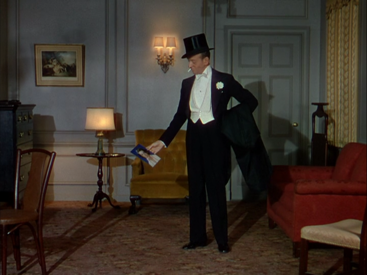 런던을 배경으로 하는 영화 로열 웨딩(1951)에서 아스테어가 선보이는 그의 다양한 복장은 전술한 그의 의복에 대한 생각을 잘 반영한다. 그가 영화 중 선보인 옷차림을 캡처해 보았다.