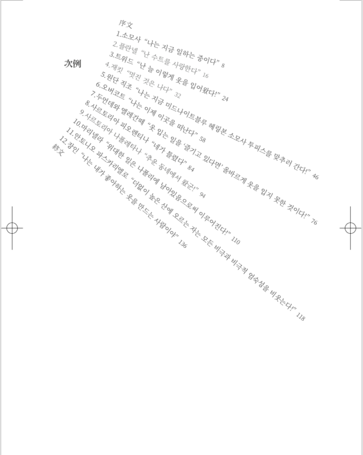 열두 장 중 브런치 포스팅을 위해 작성한 내용을 보강-재구성한 것이 첫 여섯 장을, 책을 위해 새로 작성한 내용이 나머지 여섯 장을 이룬다. 첫 여섯 장 역시 질감이 많이 달라졌다. 이전의 글이 다소 보편적인 정보를 제공하는 데 머물렀다면 책에서는 부족하나마 내 경험을 담기 위해 노력했다. 무엇보다 내 수트들과 그 진짜 주인인 사르토들에 관한 이야기들이 담겨 있다.