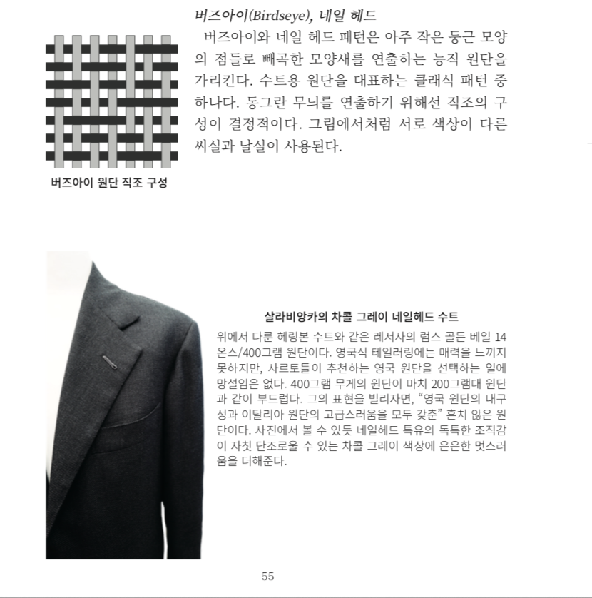 자신의 스타일을 찾는 여정에 있어서 나에게 맞는 원단을 고를 줄 아는 안목은 필수적이다. 그만큼 원단은 아름다운 옷에 있어서 중요한 요소다. 그러나 원단을 분석, 분별해 내기 위해서는 세밀한 언어가 필요하다. "이탈리아 원단", "영국 원단" 정도의 단어에서 멈춰 선다면, 그 이상을 감각할 수 없게 된다. 간단한 이치다. 축구 팬이 이탈리아 축구, 영국 축구 따위의 단어로 클럽/대표팀의 전력을 도맷금으로 판단하지 않듯이, 애호가는 “이게 유행하는 옷입니다”라는 말에 휘둘리지 않는다. 적지 않은 금액, 시간, 에너지라는 비용을 유발하는 수미주라 수트의 경험이 휘발되지 않고, 축적될 수 있도록 지침서를 마련하고자 했다.