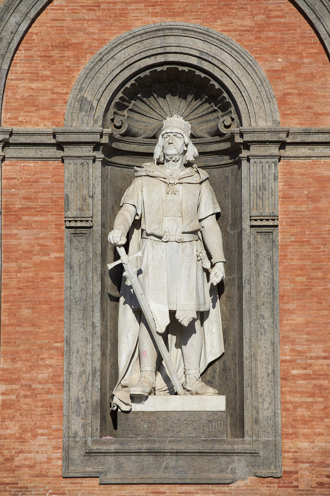 1130년, 로마이남부터 시칠리아까지를 아우르는 시칠리아 왕국이 탄생한다. 향후 나폴리 역사 700년을 결정한 사건이다. 이로부터 남부이탈리아 왕정체제는 1861년 이탈리아 통일까지 그 명맥을 이어가게 된다. 초대국왕은 루제로 2세, 나폴리 플레비시토 광장에 서 있는 여덟 조각상 중 첫 번째 인물이다. 노르만의 대표 군웅 로베르 쥐스카르의 조카인 그는 1130년 시칠리아 왕국의 초대왕으로 즉위한다.