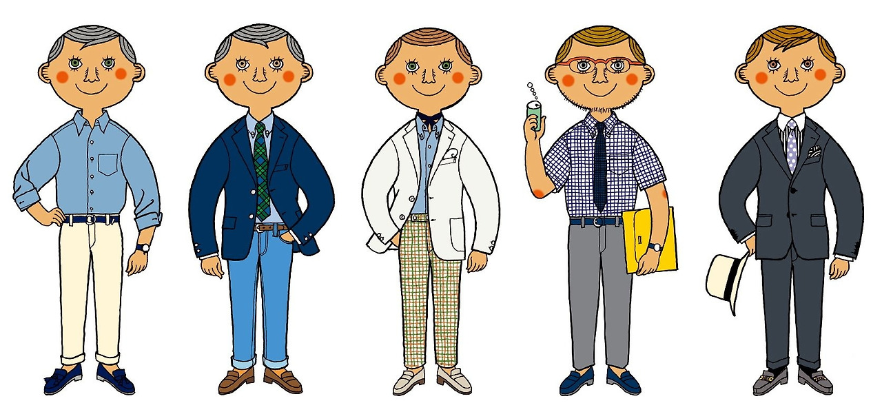 결정적으로 이시즈의 마음을 움직였던 것은 지난 포스트에서 언급한 동부 학생들의 ‘헌 옷 사랑’이었다. 낡은 트위드 재킷, 페니 로퍼, 버튼 다운 셔츠를 입어내는 아이비 학생들의 뭐라 말할 수 없는 우아함은 평생 남성복을 사랑해온 이시즈에게 강하게 어필하고 있었다.