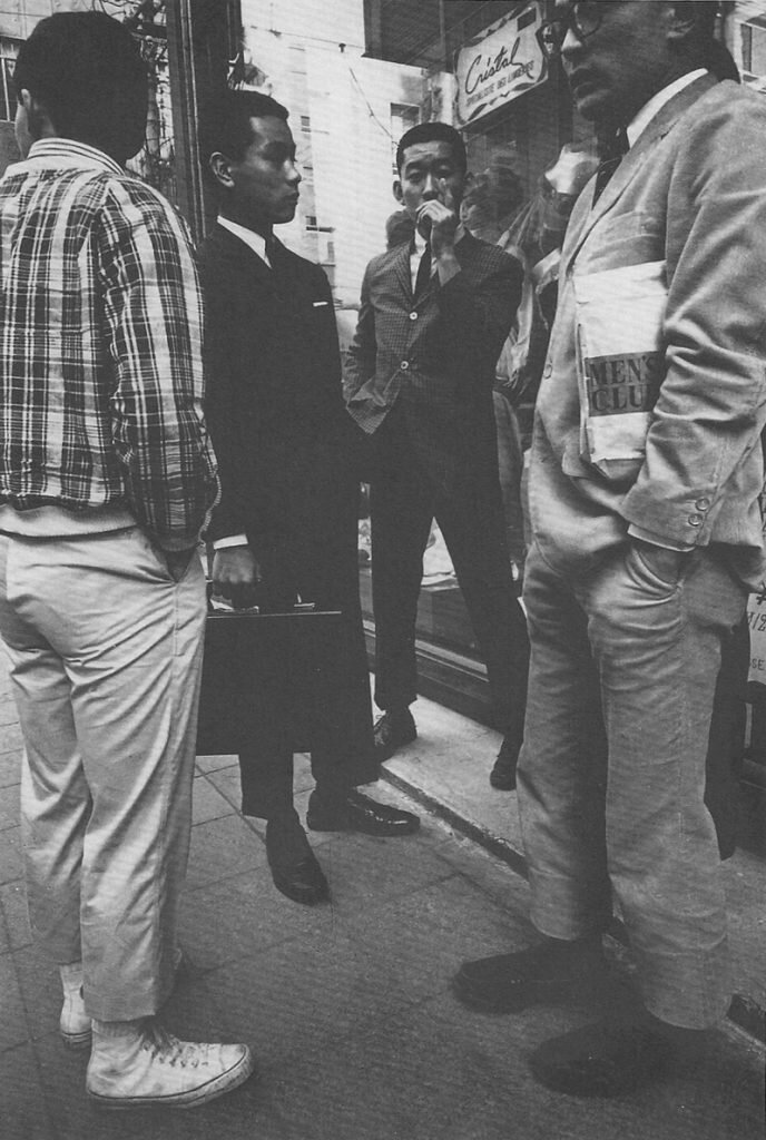 50년대에 등장한 ‘잡지가 스타일을 전파하고, 대중이 그것을 답습하는’ 형태의 패턴은 그 후로도 수십 년간 일본 남성복 시장을 지배한다(W.D. 맑스) -미국의 스트릿-스타일(street style)에 관한 잡지 기사가 거리에서 발견된 젊은이들의 복장을 포착하여 그것을 다루는 방식이라면, 일본의 스트릿 스타일 칼럼은 아직 일본에는 존재하지 않는 ‘스트릿 스타일’을 잡지가 규정하고, 잡지가 그 스타일에 필요한 규칙에 대한 인식을 독자에게 교육시킨 후, 그것을 철저히 답습한 젊은이들이 잡지를 통해 배운 ‘스트릿 스타일’ 차림으로 ‘스트릿’에 등장하는 과정을 거쳤다.)