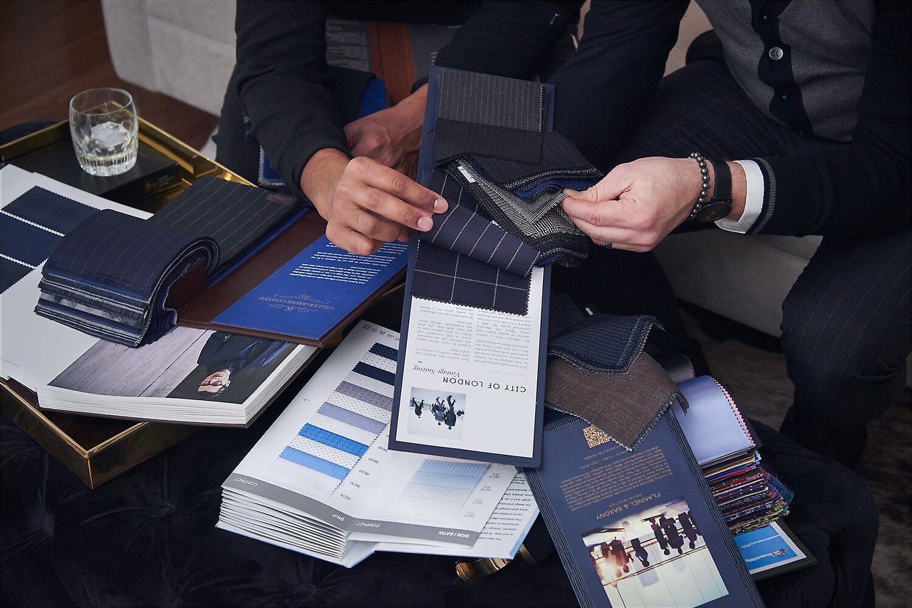 고객 입장에서 선택 가능한 원단의 수는 다다익선일 듯하지만, 수트를 주문하는 남성이 감당이 되지 않을 정도로 많은 선택지 앞에서 당황하게 되는 일 역시 부지기수로 일어난다. 가장 기본적인 추동용 네이비 싱글-브레스트 수트에 알맞은 원단을 선택하는 일 역시 만만한 일이 아니다(달리 말하자면, 지나치게 많은 ‘알맞은’ 원단들이 존재한다)