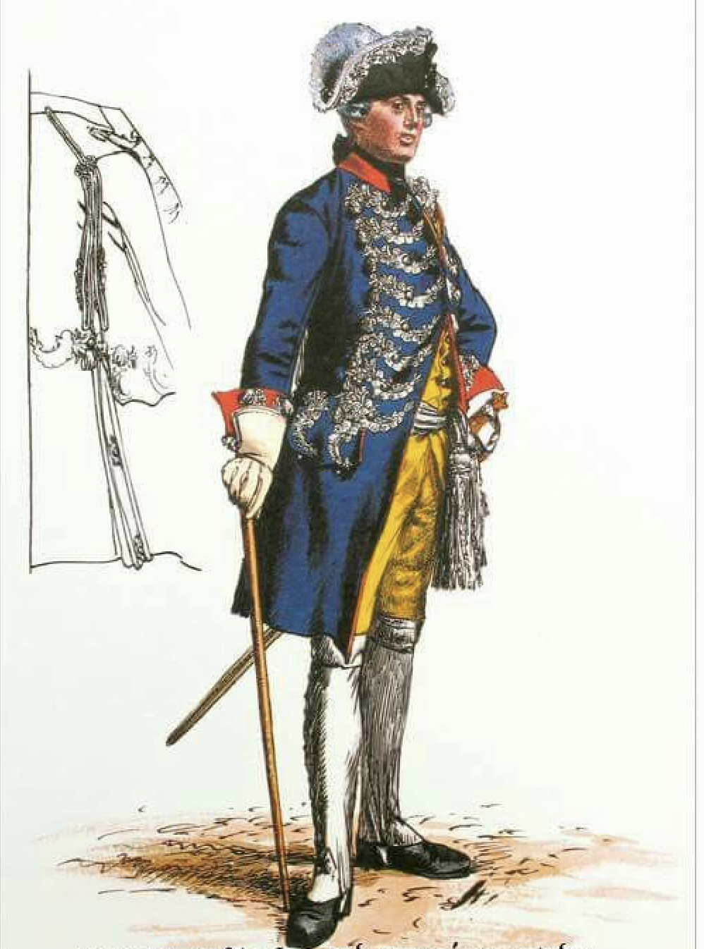 군복이 직접적으로 남성복의 유행에 영향을 끼친 대표적인 사례는 7년 전쟁에서 승리를 거둔 프러시아 군복의 타이트한 핏, 곧은 실루엣, 화려한 장식용 액세서리가 서유럽의 테일러들에게 큰 인상을 남긴 사건이었다. 1760년대와 1770년대는 이러한 군복의 요소들이 평상복에 적용되던 시기였다.