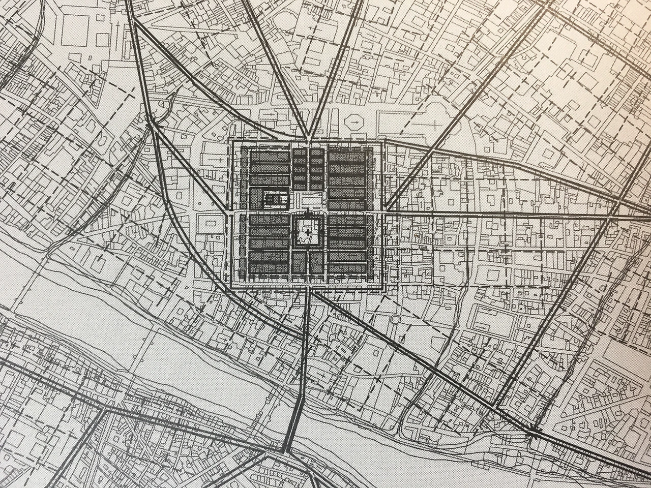 물론 도시의 경제를 지탱해줄 수입원인 경작지에 대한 구상 역시 진행돼야 했다. 도시가 들어서기 전부터 피렌체 근방의 토지는 로마의 격자형 경작지 구획 방식인 ‘센투리아초네(centuriazione- 710미터를 기본 단위로 하는 정방형의 격자 체계)로 나누어졌고, (이것은 마을의 땅을 9 분할하여, 가운데 구역의 수확물만 중앙정부에 조세로 바치는 고대 중국의 정전법과 유사한 조세 제도였다(손세관))이와 같은 쎈투리아초네는 자연지형(아르노의 방향)을 따르고 있었다. 따라서 그 구획선은 동서남북의 방향을 정확히 맞추어 기획된 도시의 성벽에 비해 30도 정도 기울어 있었다 (손세관).