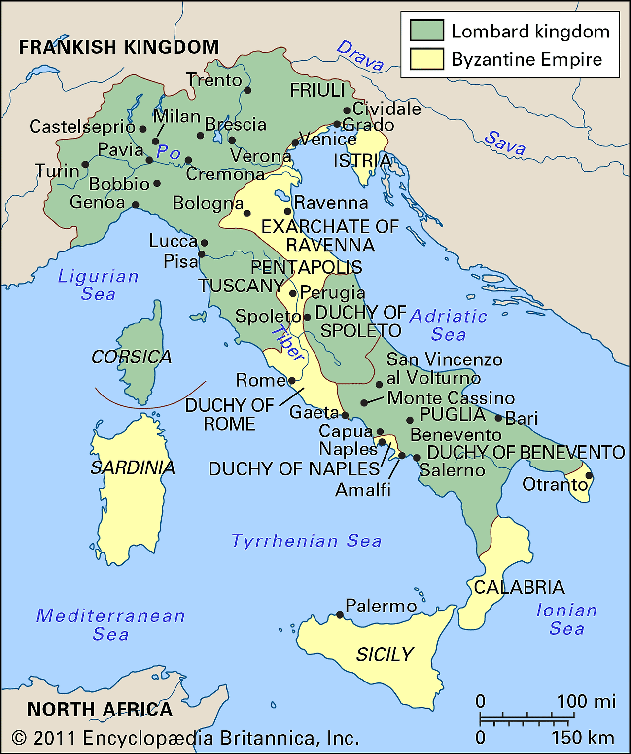 동고트족, 비잔틴 제국, 롬바르드족 사이에서 유린당한 5-8세기 이탈리아 역사를 통틀어 가장 안타까운 점은 이들 중 그 누구도 압도적인 군사력으로 이탈리아 반도를 한 세력 아래 통합하지 못했다는 것일지 모른다.