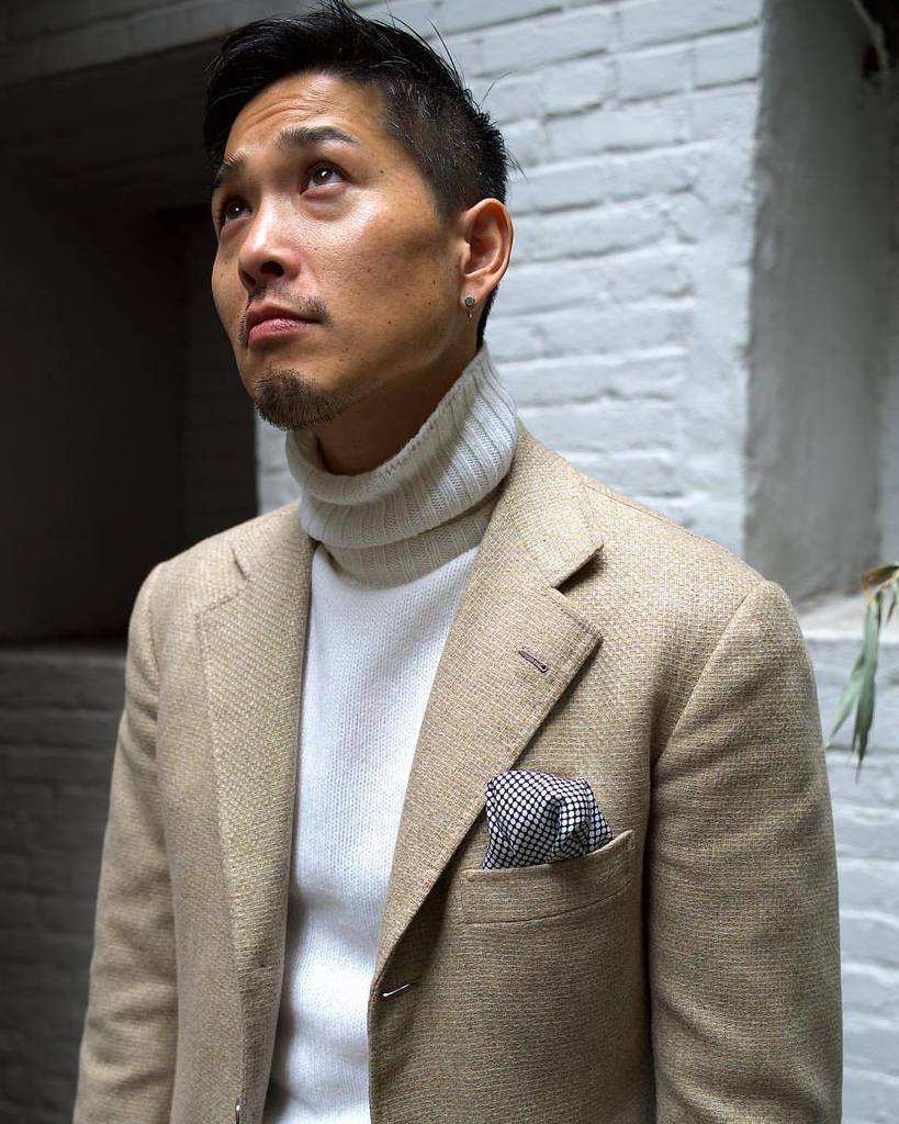반면, 이번 포스트의 주인공 캐시미어는 이와 같은 설움으로부터 완벽하게 자유로운 존재다. 첫 만남의 순간부터 특유의 발색과 감촉으로 우릴 매혹하는 캐시미어는, 남성의 몸이 근육질이건, 둥글둥글하건, 작대기 같이 말랐건, 그 굴곡 위에서 특유의 드레이프를 그리며 그의 흔들리는 팔과 함께 겨울밤 찬 공기 속을 우아하게 헤엄친다.