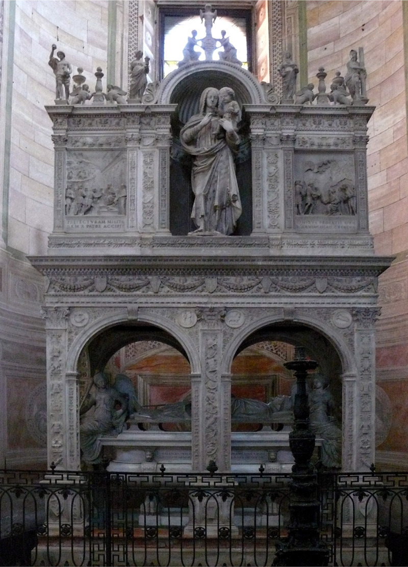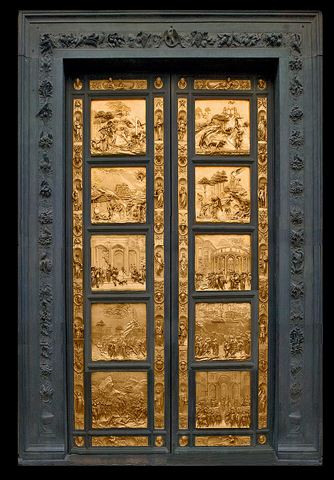 (철저한 실리주의를 추구했던 베네치아는 반도에서 벌어지는 분쟁을 그들의 석호 위에서 관조하며, 약자 쪽에 힘을 보태는 식으로 세력의 균형을 유지하는 역할에 전념하고 있었다 – 그러나 피렌체 역사 최대 위기 중 하나였던 비스콘티 침공 당시 베네치아는 너무 허무하게 피렌체를 배신해 버렸다- 결국 존망의 위협으로부터 또 한 번 피렌체를 구원해준 것은 역시 피렌체의 수호신이었다. 비스콘티는 토스카나에서 북부 이탈리아 통일의 마지막 과제였던 피렌체 침공을 준비하던 도중 1402년 갑작스레 사망한다. -그의 시신은 피렌체의 숙적 피사로 옮겨졌다.)
