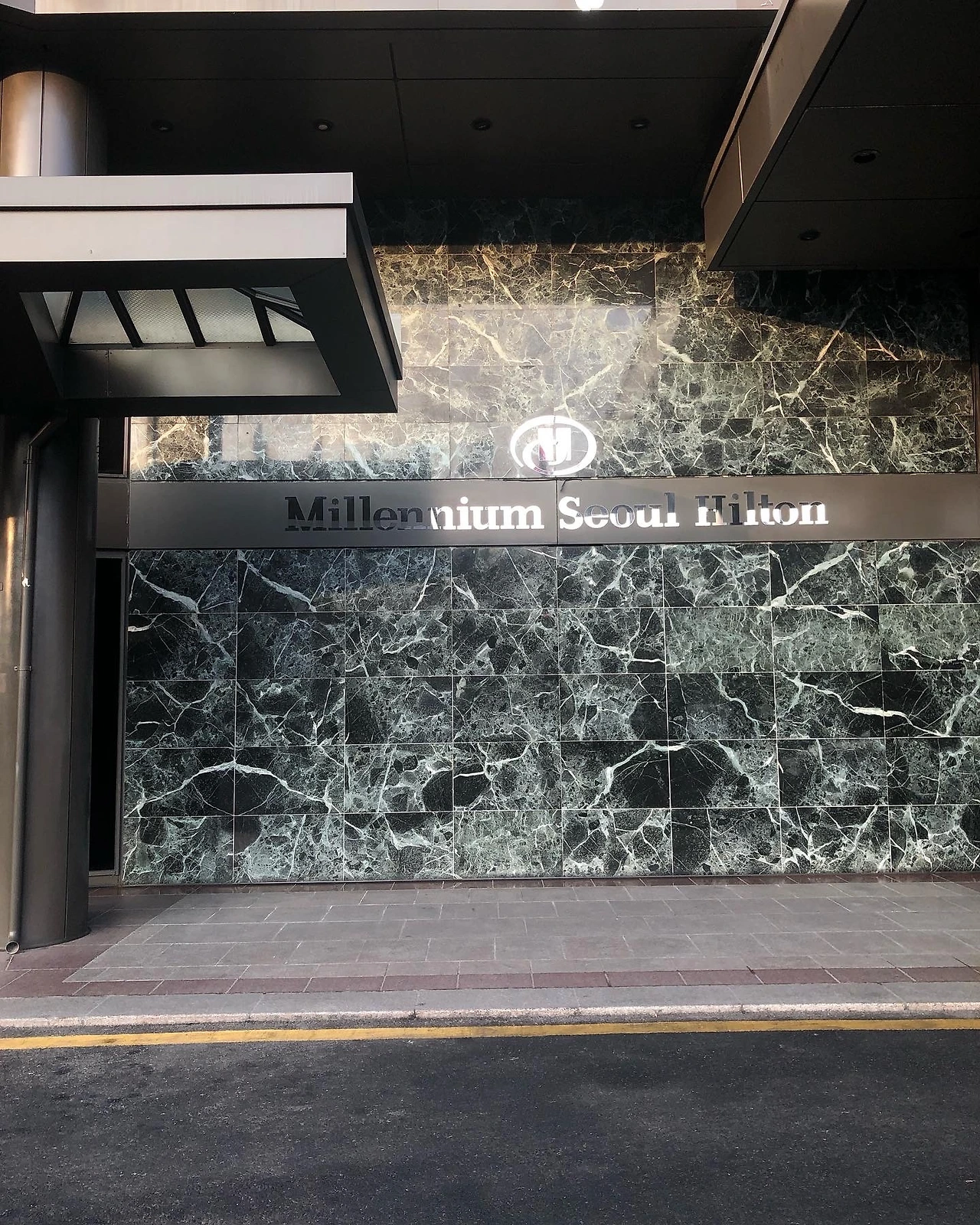 남산 자락의 밀레니엄 힐튼은 바우하우스 건축의 간결하고 핵심적인 공간 설계+ 자연과 조화를 고려한 한국적 가치가 일품인 건축물이다. 1979년 공사 당시 사용된 건축자재들은 이탈리아 산 대리석과 동(bronze) 그리고 오크우드인데, 아마 지금의 가격으로는 한꺼번에 사용하기 힘든 것들이라 들었다.