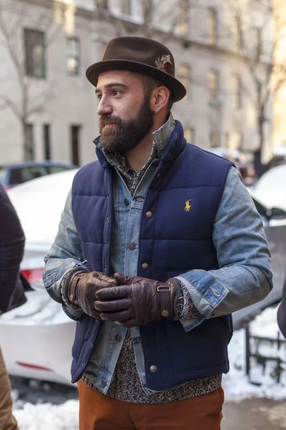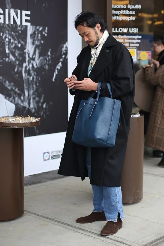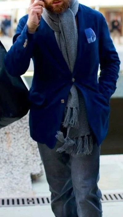 컬러가 일반 블루보다는 어둡고 네이비보다는 밝기 때문에 포인트 액세서리 아이템으로 좋습니다. 겨울이 저렇게 칙칙한 차림에 포인트가 되죠!!