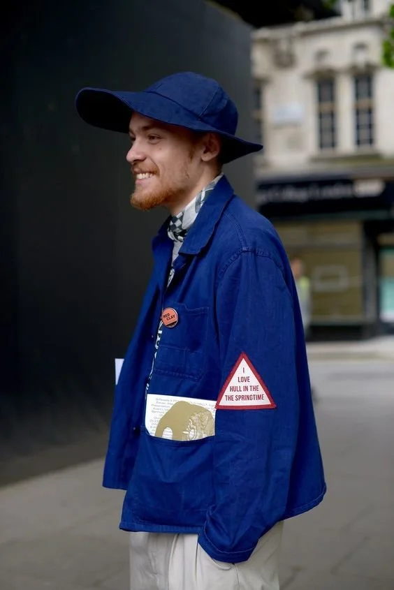 역시 클래식 블루로 모두 맞추어 입은 남성.