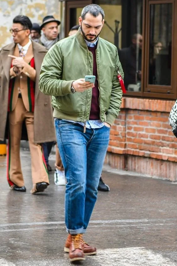 은근 유럽사람들도 봄버를 즐겨 입더라구요. 저렇게 살짝 걸친거 같은 느낌으로 패피같은 느낌을.
