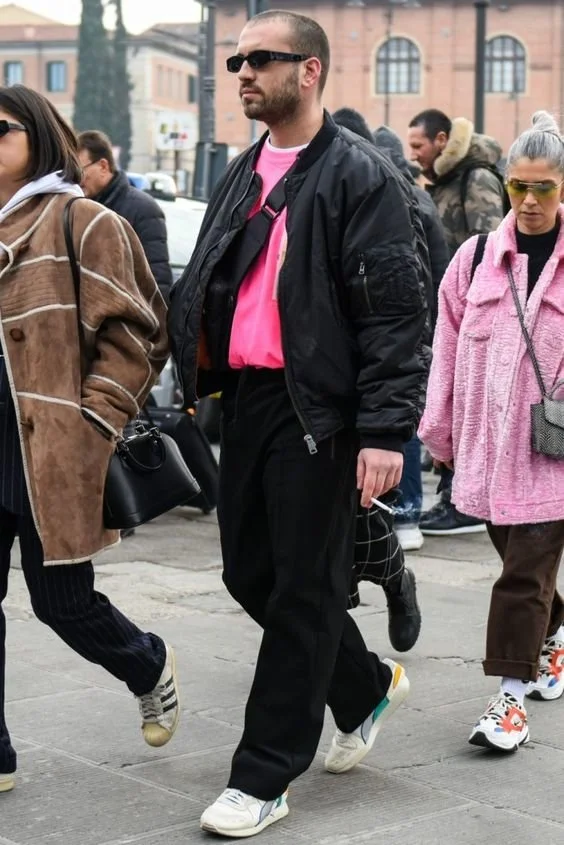 블랙 봄버에는 이너로 핑크핑크도 좋아보이네요. 뭔가 힙한 느낌이에요.