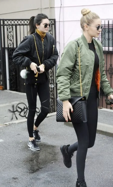 지지하디드와 건달제너는 가장 기본인 올리브카키와 블랙을 맞춰 입었네요. 요망한 것들!