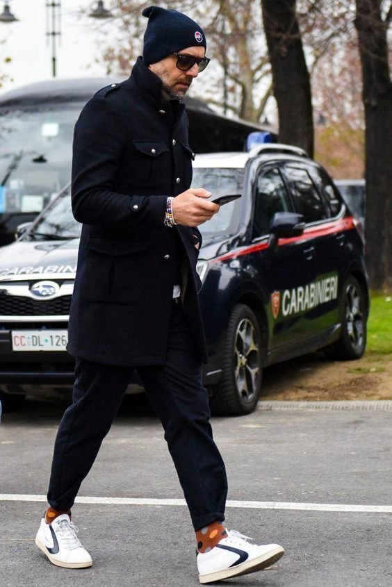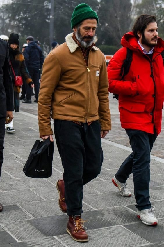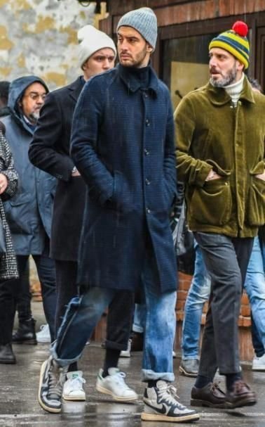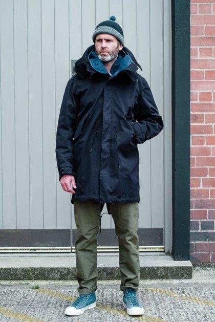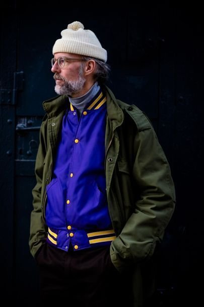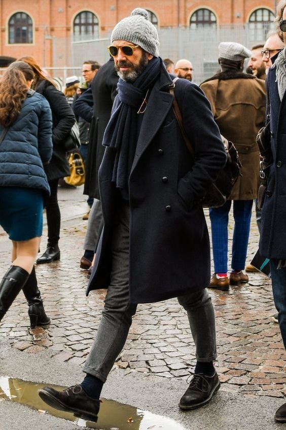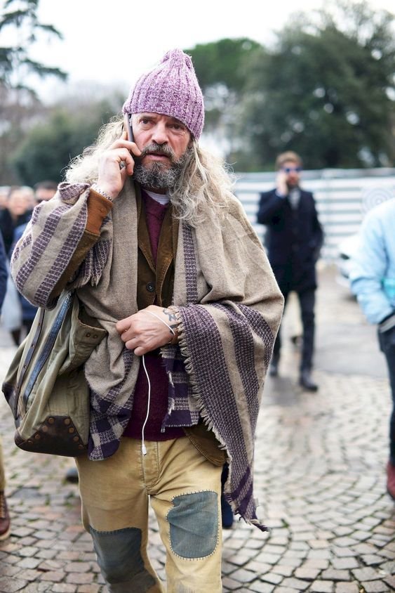 블루재킷에 카키 필드 자켓,폼폼 비니를 위트있게 매칭한 멋진 할배. 자세히 보면 할배도 아니에요. 그냥 흰고래수염있으면 할배..