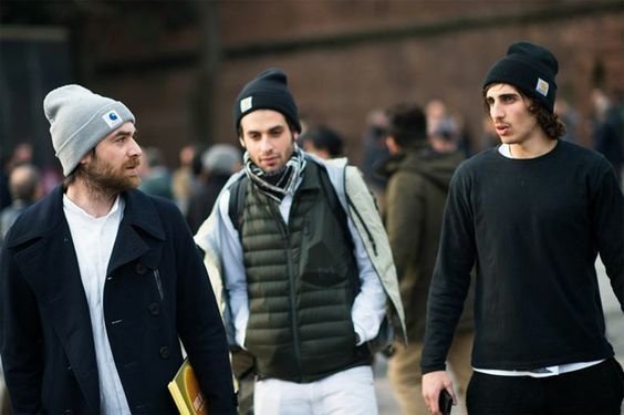 아무래도 서양인들은 이목구비가 동양인에 비해 더 입체적이고 작아서 그런지 얼굴을 다 드러내고 쓰는 비니가 동양인보다는 더 잘 어울리는 것 같아요. 얼굴에 있는 수염들과도 조화롭고요.