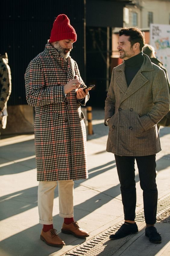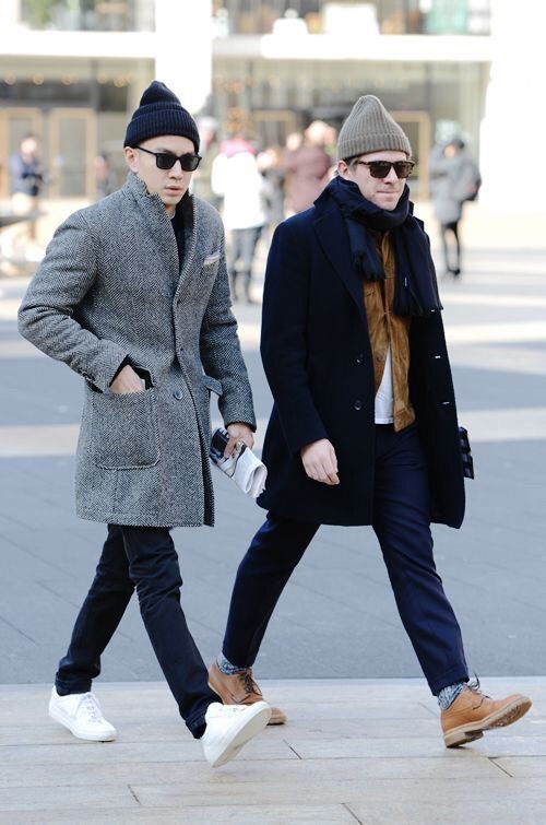 여기도 두 남성이 서로 다른 디자인의 비니를 썼어요. 유럽사람들 비니모자 참 좋아해요.