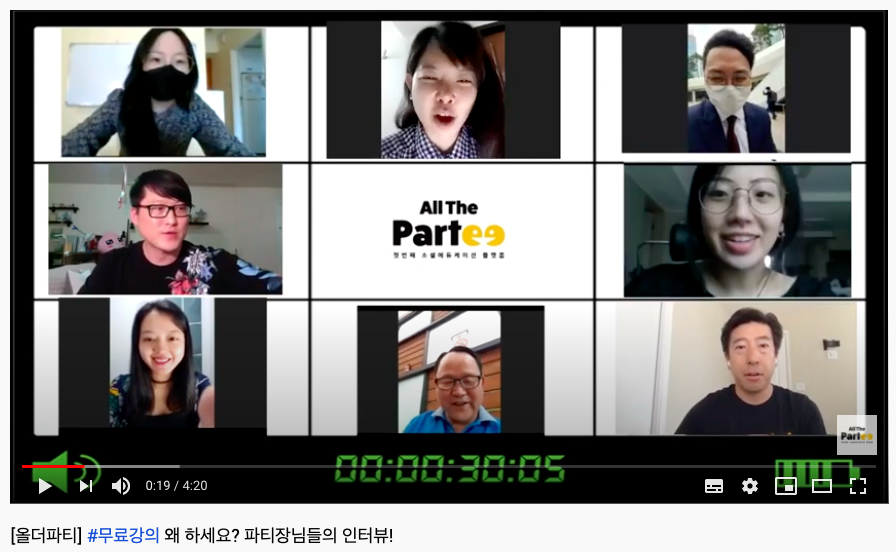이후 영어 공부를 어려워하는 친구를 위해 무료 영어 강의를 2020년 3월에 시범적으로 선보였고, 점점 입 소문이 퍼지면서 카카오톡 오픈 채팅방을 통해 사람들이 모이게 되었어요. 나중에는 70개가 넘는 오픈 채팅방이 열리며 40개국의 다국적 참가자들이 서로 지식을 공유하는 곳으로 발전하게 되었죠. 그게 올더파티의 시작이었어요. 그중에서도 가장 인상 깊었던 방은 '랜선 영어 유치원'이었는데요. 유치원 중 가장 가격대가 높은 곳이 바로 영어 유치원이라는 사실, 모두 아시고 계시죠?