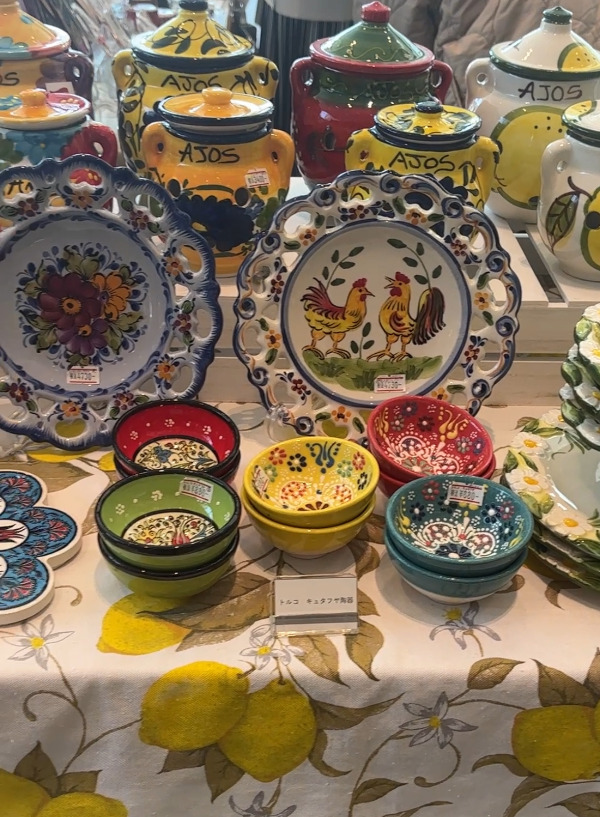 앞치마, 키링, 그릇, 쌀과자 같은 걸 팔고 있었는데