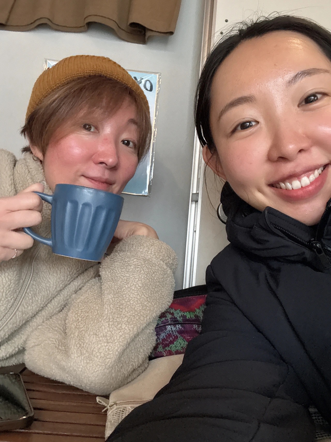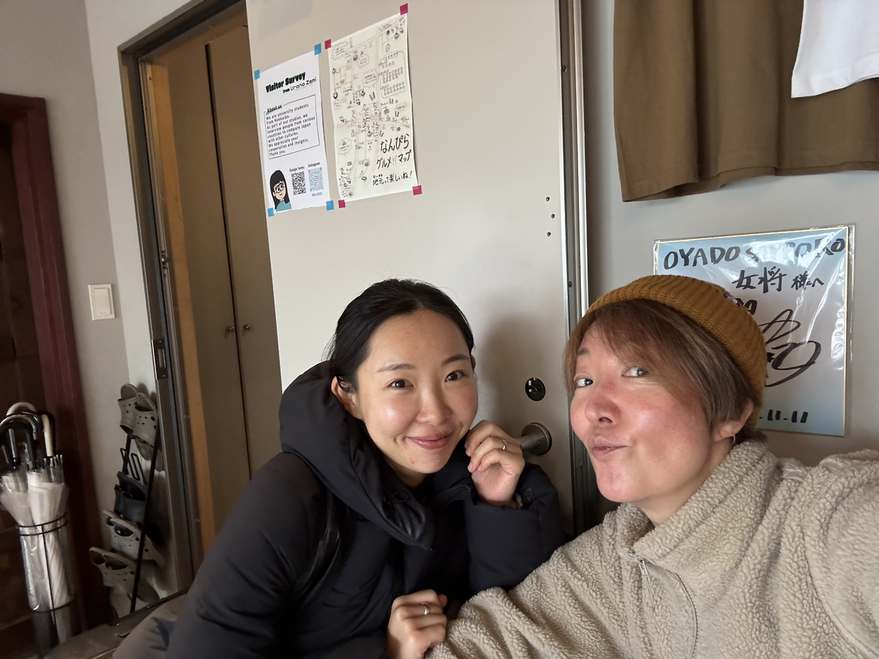 노란색 비니에 발갛게 튼 연분홍빛 볼을 가진 요시에상의 얼굴을 보니 노란색과 분홍색은 서로 참 잘 어울리는 색깔이네 라는 생각이 들었다. 한국을 너무 좋아해서 50번 넘게 여행했지만 한국어는 아직 서툴다고. 가끔 손님으로 한국인이 오면 대화하는 걸 즐긴다고 했다. 반대로 나는 일본인과 대화하며 회화실력을 늘리고 싶던 참이었다고 하니 너무 잘됐다며. 가방만 풀고 얼른 로비로 내려와서 얘기해보지 않을래?라고 제안해 줬다. 얏따! 나 완전 번짓수 잘 찾아왔잖아?
