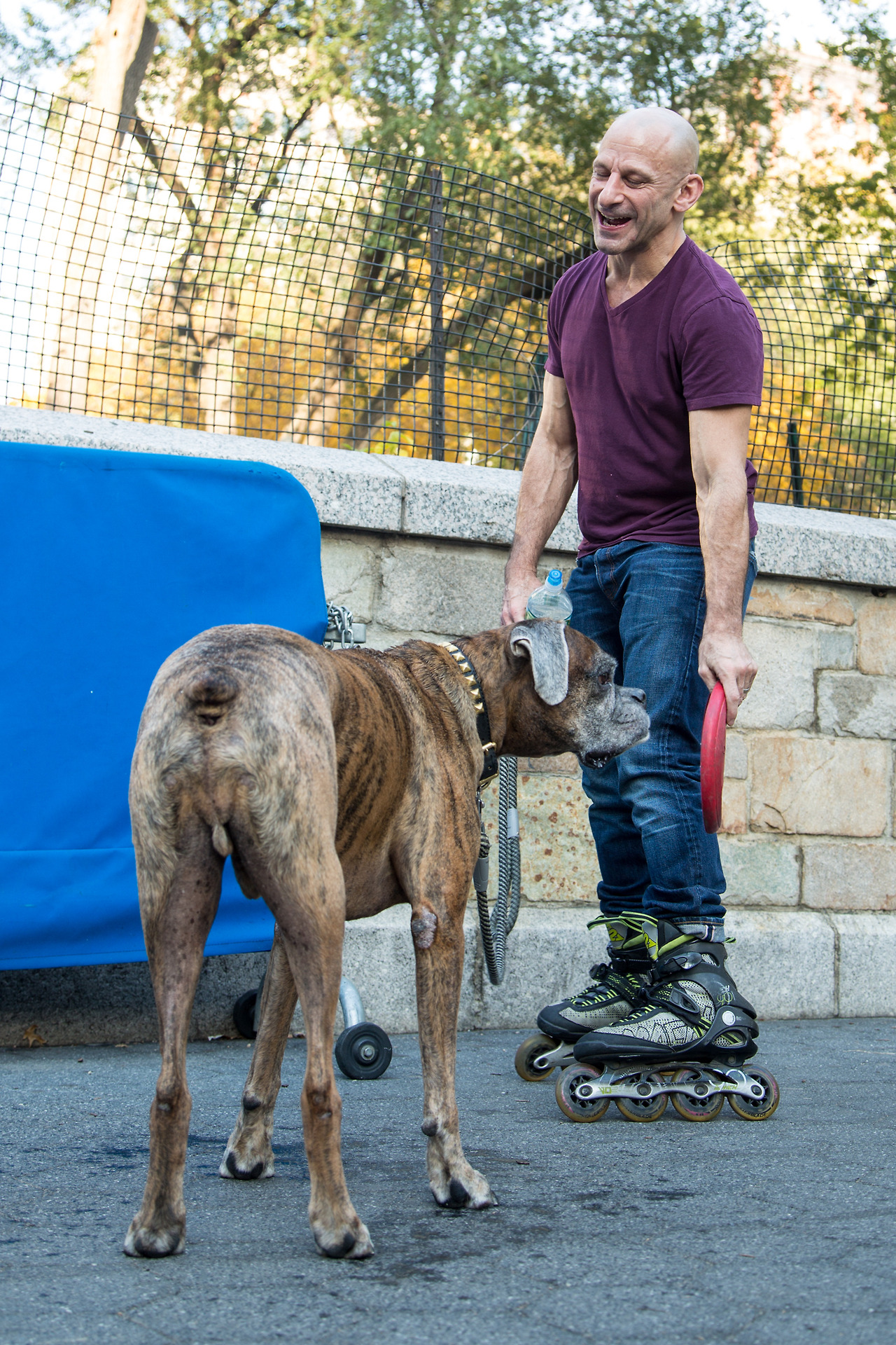 며칠 후 이번엔 롤러브레이드를 타고 대형견을 산책시키던 남성을 만났다. 날이 너무 더워 개가 헥헥대자 남성은 물병을 열어 개의 목에 물을 부어주고 있었다. 대형견 반려인으로써 대형견이 작정하고 달리면 얼마나 힘이 센지 알고 있었기에 어떻게 롤러브레이드를 타고 산책을 할 수 있는 건지 다소 의문이 들었다. 사진 속 대형견은 남성보다 천천히 걷는 바람에 오히려 롤러브레이드를 탄다기보다 바닥을 찍으며 걷는 속도로 산책 중이었지만.