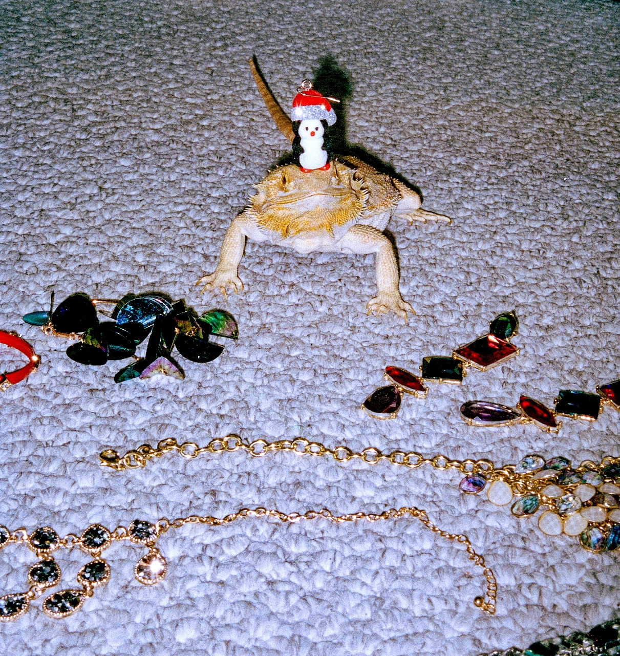 위층에 다른 동물들이 있다기에 버디와 저, 그레이슨 모두 이층으로 자리를 옮겼습니다. 파충류들의 집으로 가득 찬 그레이슨의 방은 그야말로 식물원이 따로 없었습니다. “도마뱀 먼저 꺼내 줄게!” 큰 수족관 같은 곳에 진열되어있는 각종 모형 돌과 식물들 사이에 우두커니 앉아있던 도마뱀을 그레이슨이 조심스레 꺼내어 바닥에 올려놓았습니다. 이제 와서 하는 말이지만, 사실 저는 파충류들과 그다지 친하지 않습니다. 눈앞에 정지 자세를 하고 있는 황색의 도마뱀을 보고 있자니 처음엔 당장 일어나 멀리 떨어지고 싶은 생각이 정말 간절했었어요. 그런데 "볼매"라는 말을 이럴 때 쓰는 걸까요. 한발 한 발을 살포시 들어가며 앞으로 조심스레 이동하는, 머리 위에 눈사람 인형을 놓아도 곧은 자세를 꼿꼿이 유지하는 도마뱀을 숨죽여 지켜보고 있자니 문득 이 동물도 참 매력이 있다는 생각이 들더군요. 마음을 다잡고 촬영 뒤엔 손가락을 뻗어 머리를 살며시 쓸어보기도 했습니다.