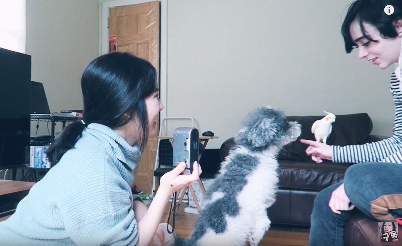 집안에 들어가자마자 어딘가에서 짹짹거리는 소리가 들려왔습니다. 뒤따라 들어오는 버디와 함께 소리가 나는 곳을 향해보니 볼이 발그레한 하얀 앵무새가 있는 새장이 보였습니다. 새와 인사를 나누고 있는데, "아마 코스모는 나이가 많아서 촬영을 귀찮아할 거야." 라며 그레이슨이 제게 귀띔을 해주었습니다.