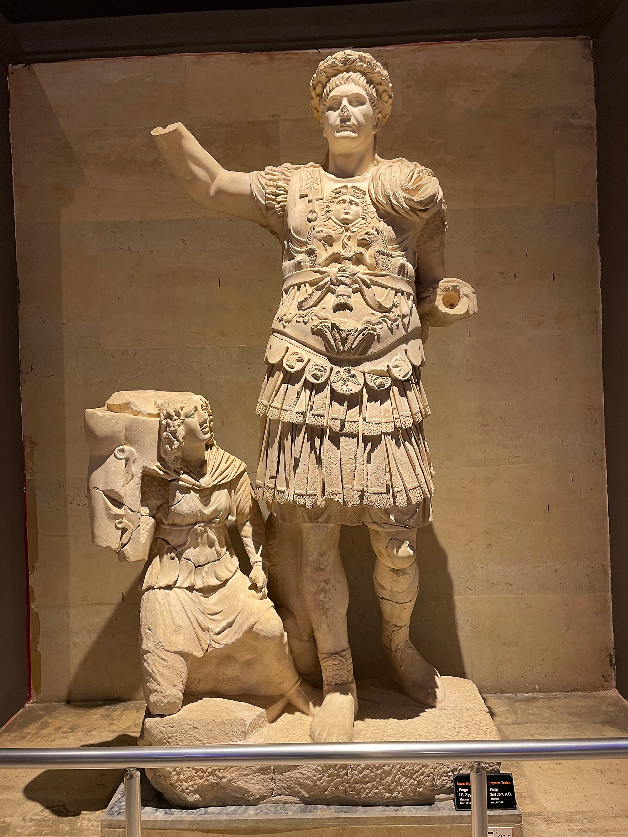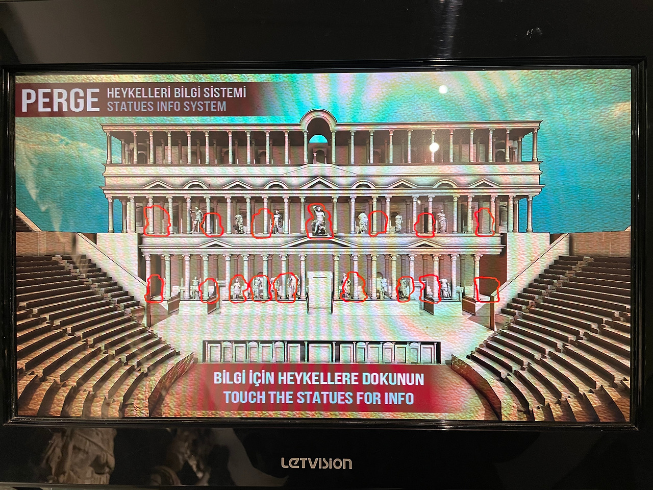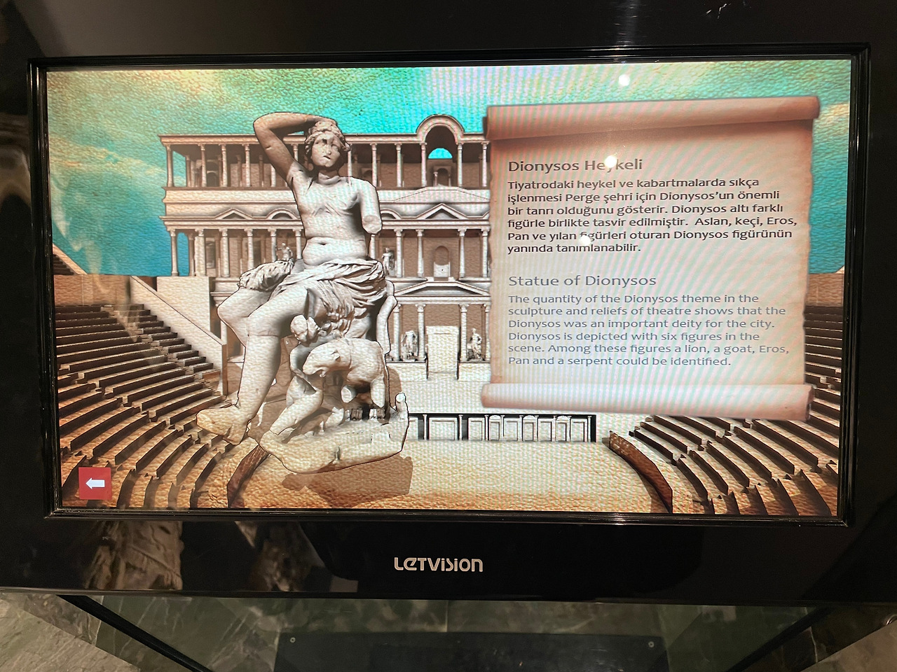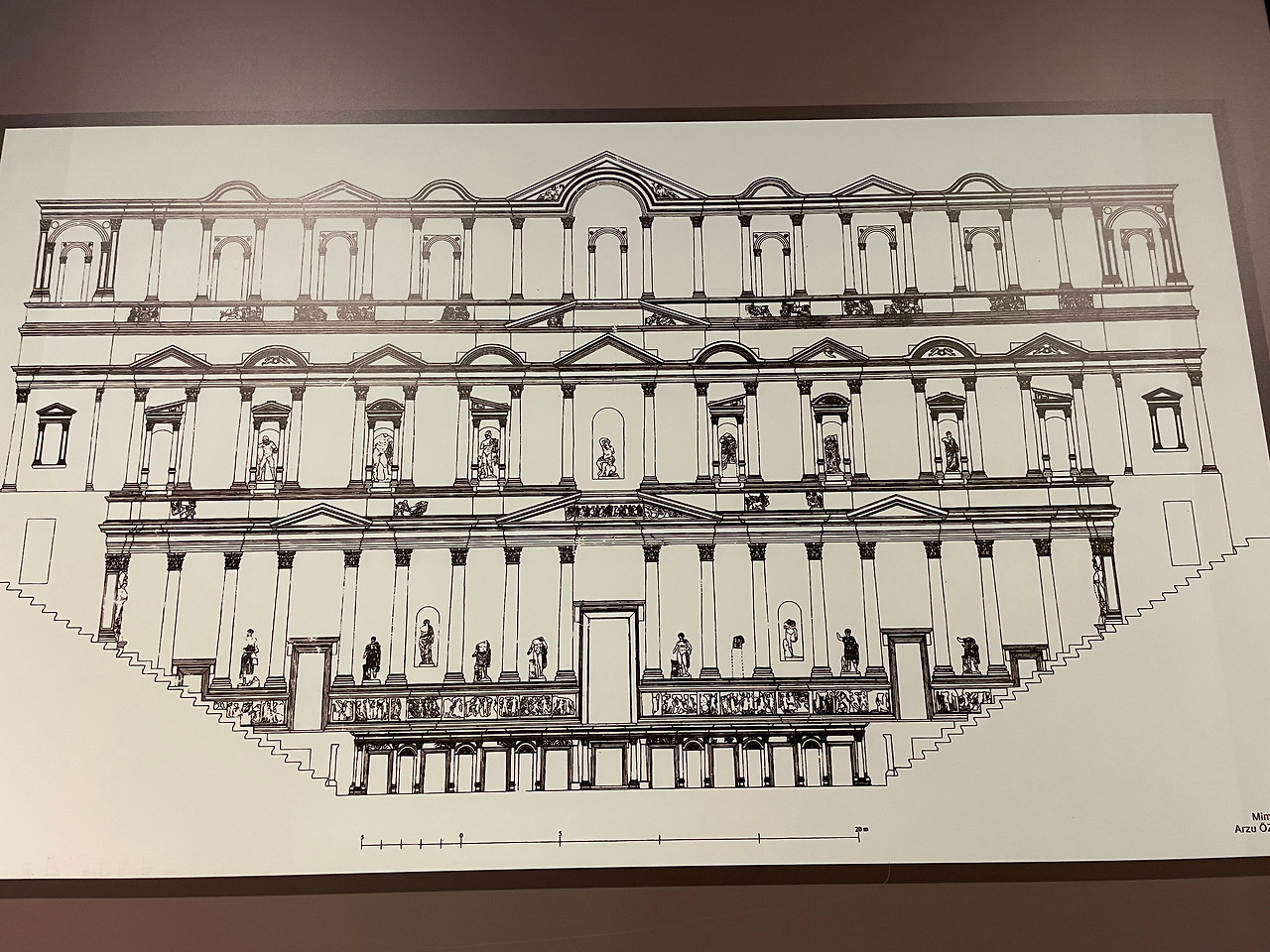 원형극장에서 어떤 대리석상이 출토되었는지를 영상으로 보여준 것이 압권이었다. 원형극장 앞의 무대는 그저 썰렁하기만 했는데, 실제의 모습은 위엄 있고 화려했다는 것을 영상으로 보여줬다. 위층에는 신들이 그리고 아래층에는 인간상들이 설치되어 있었던 것 같다. 그리고, 그 신들이 전시실을 가득 메웠다. 이미 페르게 원형극장을 보고 온 터라, 원형극장 정면에 이 신들이 함께 있었을 거란 상상을 하니, 어쩐지 친근한 느낌이 든다. 원형극장 무대 위층 가운데는 디오니소스가 그리고 양 옆으로 헤르메스, 헤라클레스, 마르시아스, 아리아드네, 티쉐, 헤라 신이 그리고 아래층에는 알렉산더, 황제들의 석상들이 배치되었다.