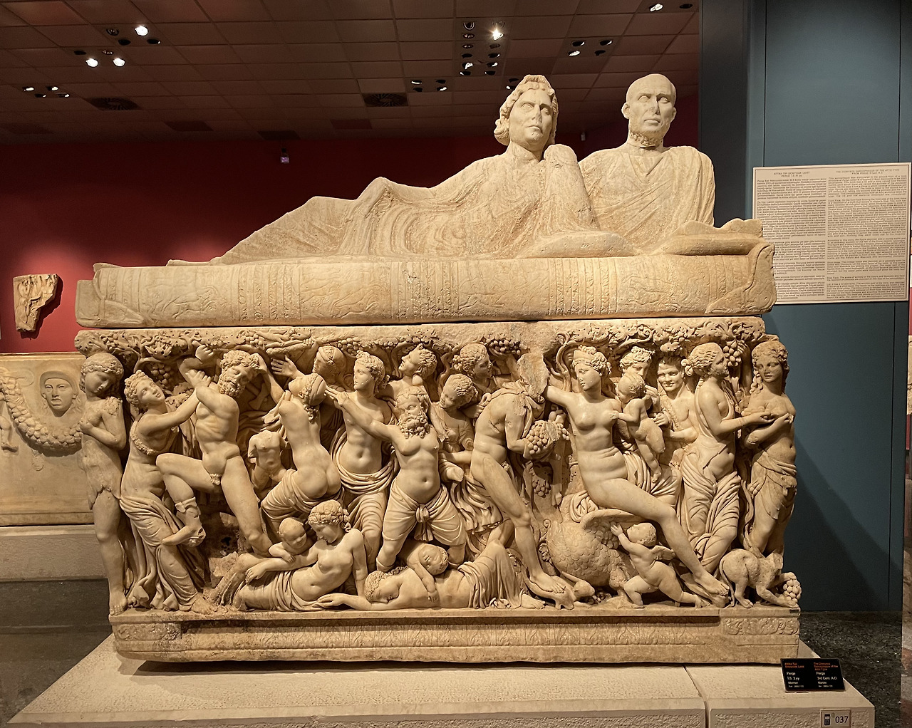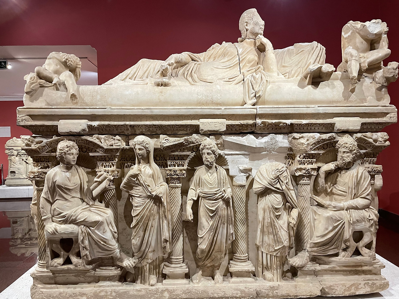 옆 전시실에는 석관들이 즐비했다. 석관에도 특징이 있어서, 보통은 메두사 머리가 보이는데 황제나 고관 귀족들의 석관에는 좀 더 정교하고 아름다운 디자인들을 담고 있었다.