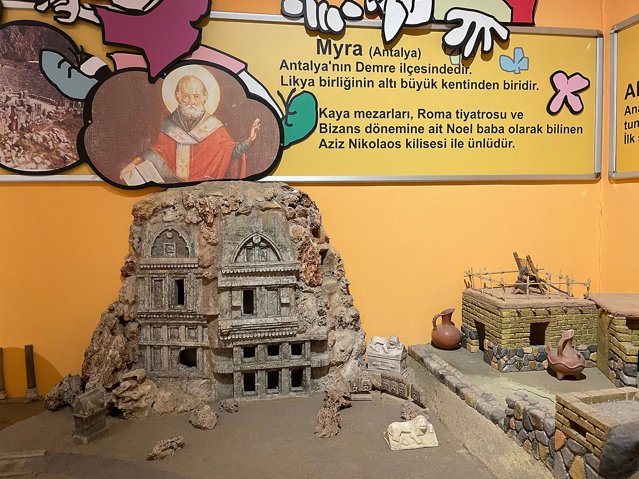 박물관 2층에는 고대도시 '파타라'에서 태어나 '미라'에서 돌아가신 '성 니콜라스'의 유해가 전시되어 있었다. 산타클로스의 유래가 이 성 니콜라스에서 시작되었다고 한다. 옆에는 이콘(icons)이라 명명되는 그림들이 걸려있는데, 사람들에게 종교를 가르치고, 정통 기독교 종교의 의식에서 예배 행위를 수행하기 위해 만든 그림이라고 한다. 이 그림들은 예수의 일생, 선행, 예수와 12명의 제자 그리고 사도 요한의 모습을 표현하고 있었다. 안탈리아 지방에 이런 이콘들이 가득했다는 것은 이 지역에 그리스도 정교회 교인이 많았음을 증명하는 것이라고.