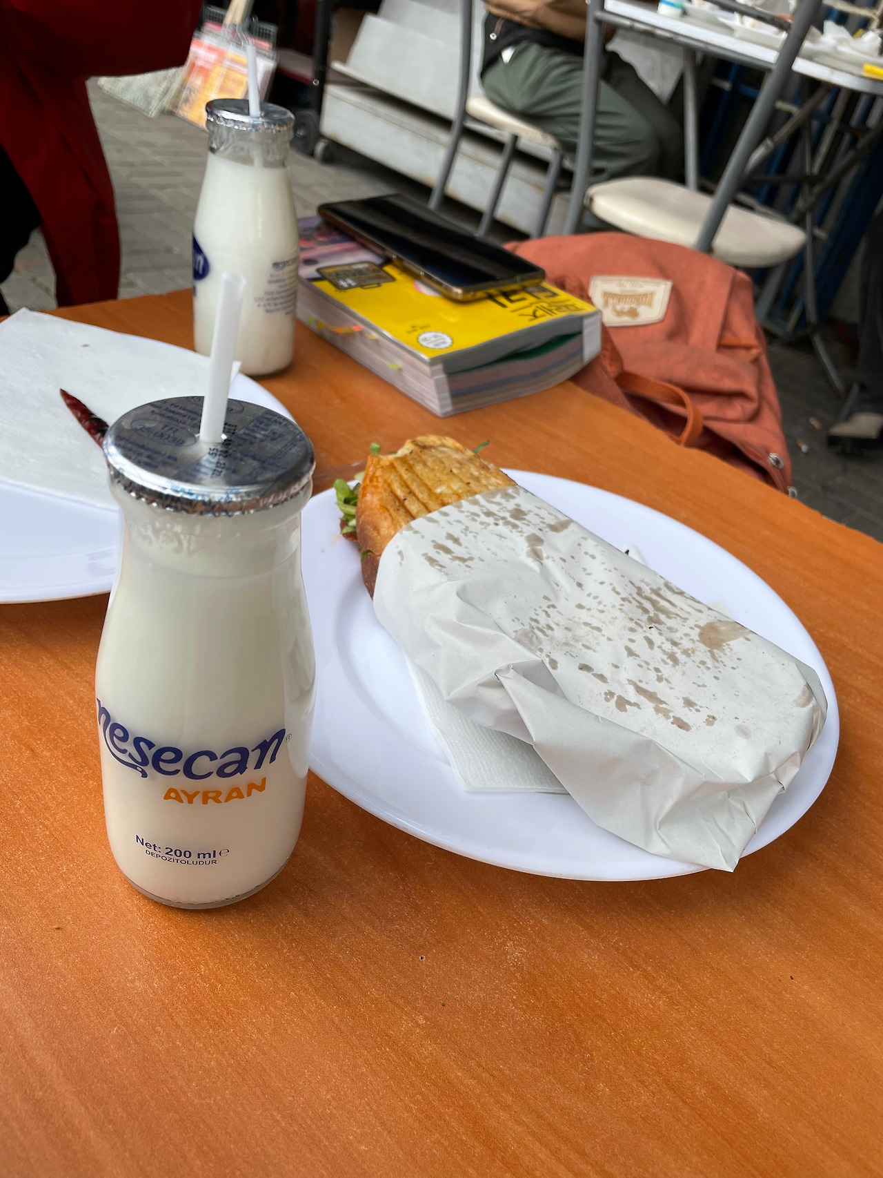 견과류 파는 곳에서 캐슈너트가 피스타치오와 마카다미아를 사고, 토스트를 구워 파는 노점에서 토스트랑 아이란을 먹는다. 막 구워진 토스트는 안에 몇 가지 야채와 치즈가 들어있는데, 아주 맛있었다. 터키음식은 달지 않아서 좋다. 아이란은 마시는 묽은 요구르트인데 단 맛이 하나도 없다.