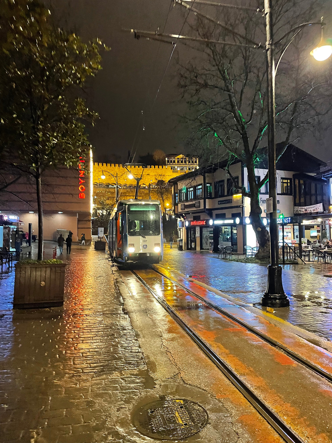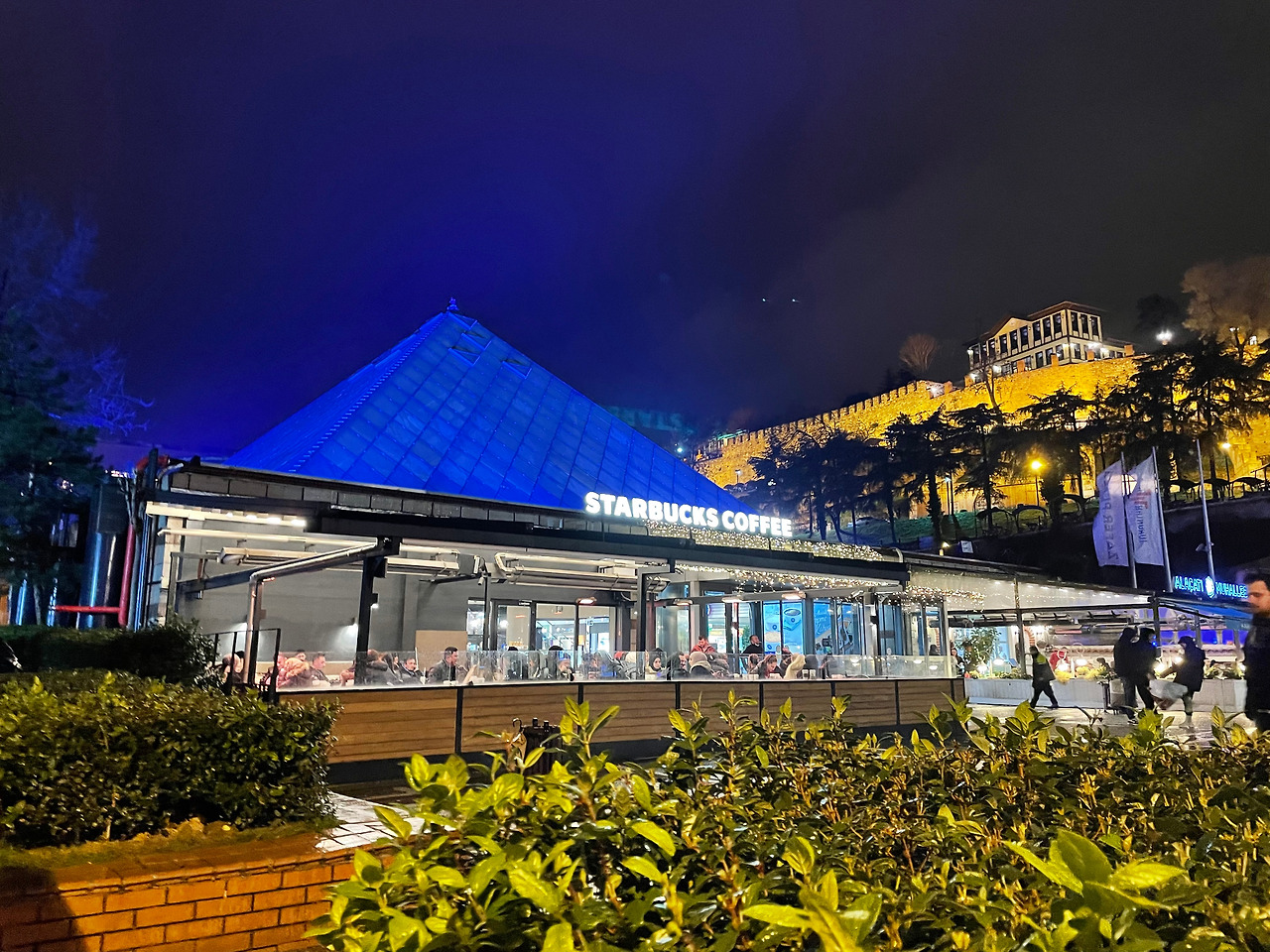 밤 산책을 한다. 걷다 보니 웬 푸른빛 피라미드 건물이 보였고, 그곳 1층이 바로 스타벅스였다. 내부로 들어가니 쇼핑센터였다. 들어온 김에 둘러보기로 했다. 꽤나 고급스러운 매장들이 즐비했고, 때문에 이 건물 출입엔 HES 코드가 필요했다. 경비원 같은 분이 한 명 한 명 검사하고 있었다. 아이쇼핑도 하고 아이스크림도 하나 사 먹는다. 화려한 고성의 야경이 펼쳐지고 트램이 달리고 사람들이 가득한 밤이다. 비 내리는 부르사는 대도시였다.