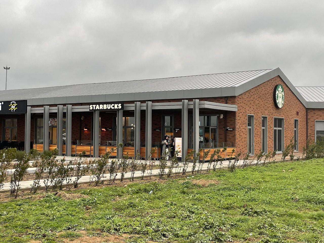 고속도로 휴게소 레스토랑에서 양고기 케밥을 점심으로 먹게 될 줄이야. 스타벅스 커피도 한잔 마셨다.