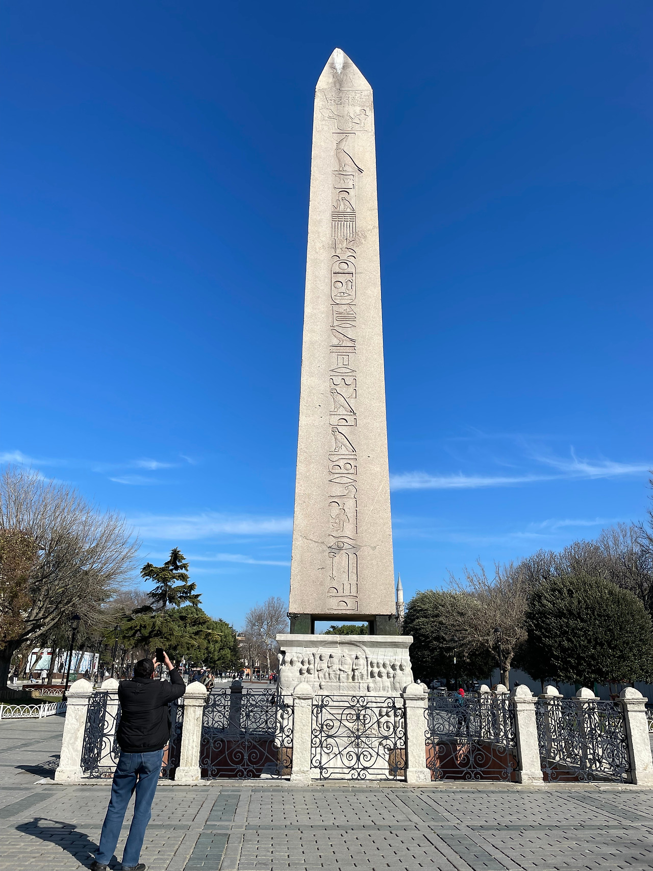 술탄 아흐메드 모스크 바로 앞에서 내려주었다. 조금 걸으니 거대한 탑이 우리를 맞이한다. 깜짝 놀랐다. 아니! 오벨리스크라니! 콘스탄티누스 기둥과 뱀 기둥 그리고 테오도시우스 오벨리스크가 나란히 보였다. 이곳은 예전에 거대 전차경기장, 히포드롬이 있던 자리다.