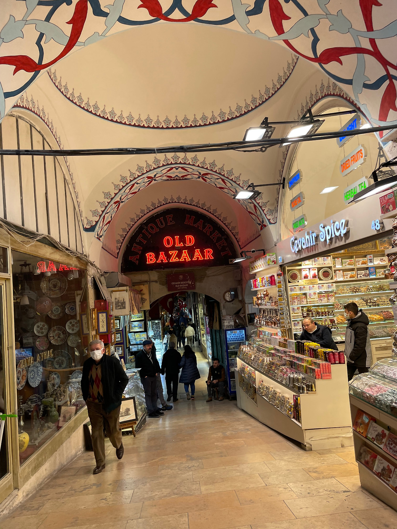 그랜드 바자르 일부는 공사 중이었다. 도자기와 실크와 카펫과 디저트와 보석류 등 없는 것이 없었고, 상인들은 다들 앞에 나와 호객행위를 했고, 제품들 중 일부는 발걸음이 느려질 정도로 화려하고 정교하고 엄청난 기술이 결합된 것들이었다. 물론 그런 제품들은 가격이 만만치 않았다. 도자기 무늬가 너무 예뻐서 가격을 물어보니 접시 하나에 무려 150달러라고.