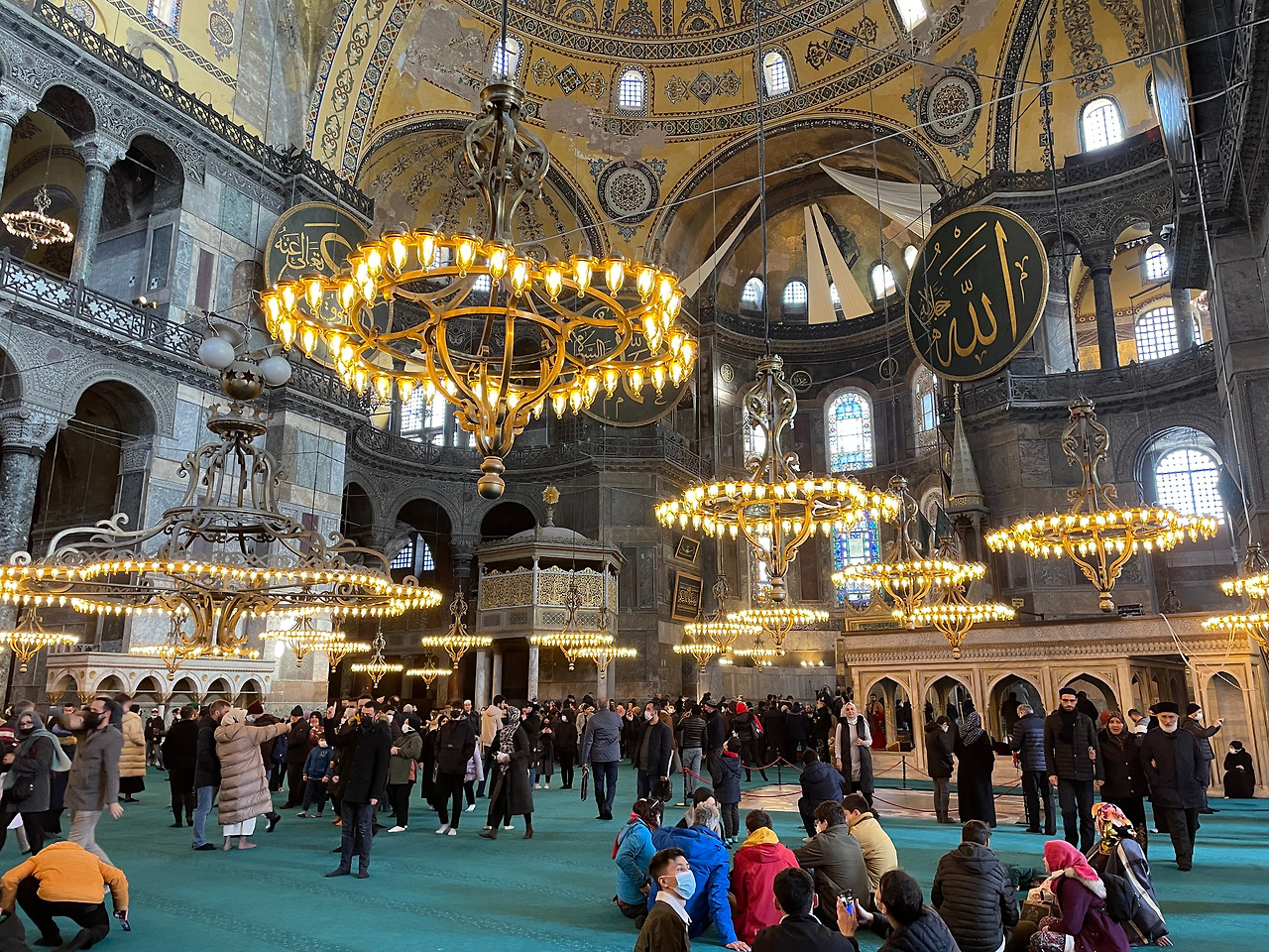 기존의 어마어마한 성당 건물에 모스크 문화가 결합된 아야소피아 성당은 그리스도교와 이슬람교 예술이 결합된 양식으로 유명한 곳이라 한다. 이스탄불을 함락한 후 처음으로 성당을 둘러본 오스만 제국의 술탄 메흐메트 2세가 감동받았다는 아야소피아. 자칫 종교의 이름을 앞세워 그 흔적을 없앨 수도 있던 시절이었다. 하지만 그러한 위기를 지혜롭게 넘길 수 있었던 것은 제국의 황제가 지닌 아름다움에 대한 뛰어난 감각 덕분이겠다. 오늘, 2022년 2월 5일 오전, 대한민국의 평범한 여성이 아야소피아를 방문할 수 있었던 것은 이런 기적의 결과다.