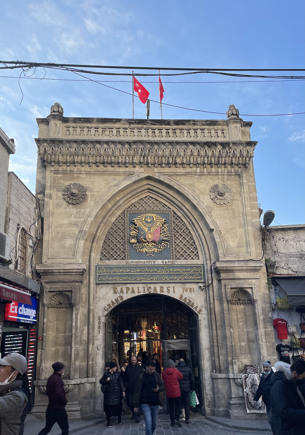바로크풍으로 지어진 모스크 건물도 구경했다. 누루오스마니예 모스크라 불린다. 1700년대에 지어진 것으로 서양 건축의 영향을 받았다 한다. 기존의 모스크보다 좀 더 아름답고 균형미 있어 보였다. 그리고 좀 더 화려했다. 이 건물의 설명서에 의하면 모스크라 표현하지 않고, '누루오스마니예 소셜 콤플렉스'라 되어 있다. 이슬람에서 처음으로 바로크 양식으로 지어졌다 해서 붙인 이름 '누루 오스마니예, 뉴 오스만 스타일...'이란 뜻에 복합 문화공간이란 뜻을 합한 이름이다. 오스만 건축의 이정표로 간주되기도 하는 이 모스크는 도서관, 무덤, 분수대 등이 함께 어우러진 복합단지였다고 한다. 그리고 이 모스크 양 쪽의 게이트가 모두 그랜드 바자르로 연결된다. 모스크 건물을 지나 조금 걸으니 누루오스마니예 하피스라고 쓰여 있는 게이트가 있고, 그 게이트 앞면에는 관광객들에게 알리는 그랜드 바자르라는 문구도 함께 적혀있다. 그랜드 바자르 가는 길에 왠지 멋지게 보이는 모스크가 보여서 들어가 보고, '와 이 모스크는 왠지 세련된 멋이 풍기네....'라고 잠깐의 감탄사를 내뱉었는데, 알고 보니 이곳도 이스탄불의 핫플이었던 것이다.
