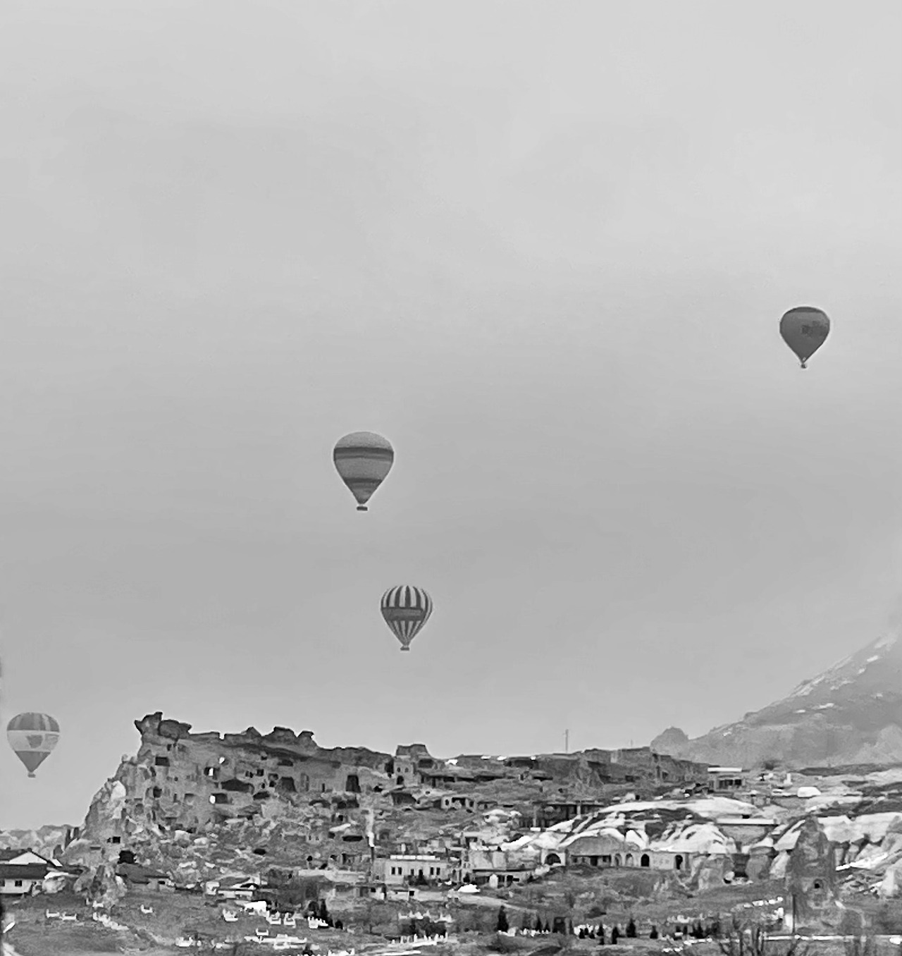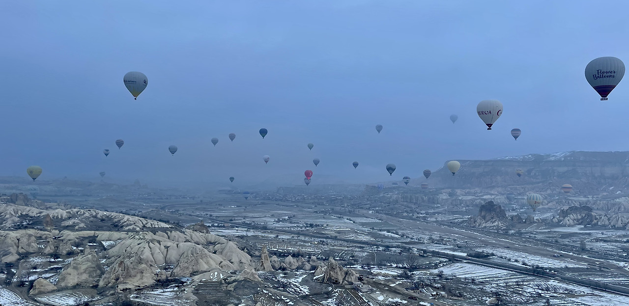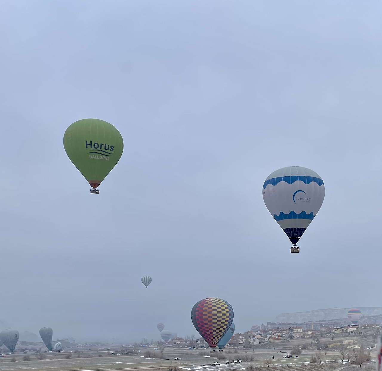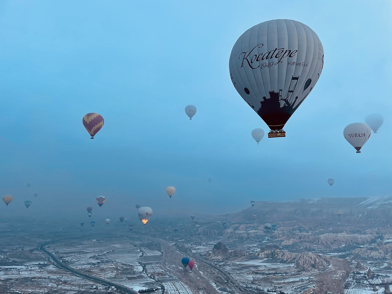 아! 벌룬이 여기저기서 하늘로 출발한다. 360도 전체 구역에서 한, 두 개씩 올라간다. 마치 춤추는 것처럼! 아! 이 많은 벌룬은 도대체 어디에 있었던 것일까? 이 겨울, 이 시간에도 이 카파도키아의 벌판 한가득 벌룬이 위로 떠오르고 있었다.