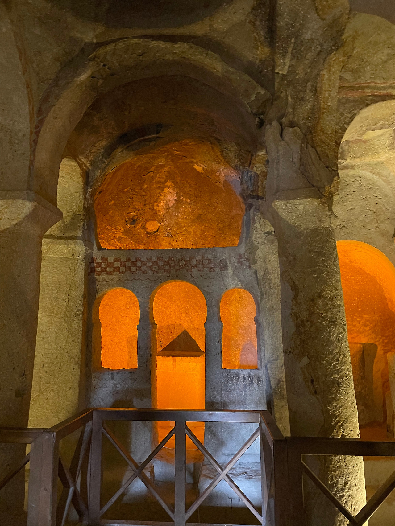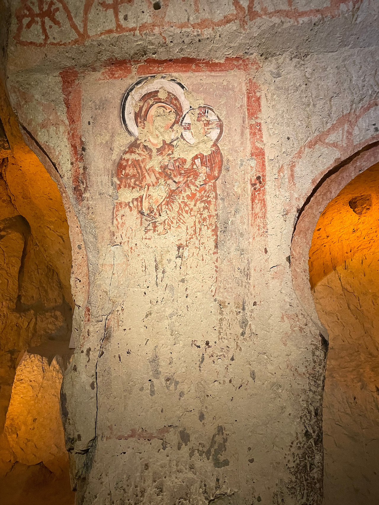 물로 많이 훼손되기도 하고 바래기도 했지만 일단 들어가 보면 동굴 속에 그렇게 교회의 모습을 재현한 것에 놀라게 된다. 교회는 거의 10여 개는 되어 보이고, 다크 교회란 곳은 별도의 요금을 내야 하는데, 들어가 보면 깜짝 놀랄 만큼 교회의 성화가 아주 선명하게 가득한 모습이다. 성화들은 기본적으로 예수상, 동정녀 마리아상, 예수의 탄생과 기적 그리고 마지막 만찬 등을 주제로 한 것들이며 예수의 제자들도 다수 보인다.