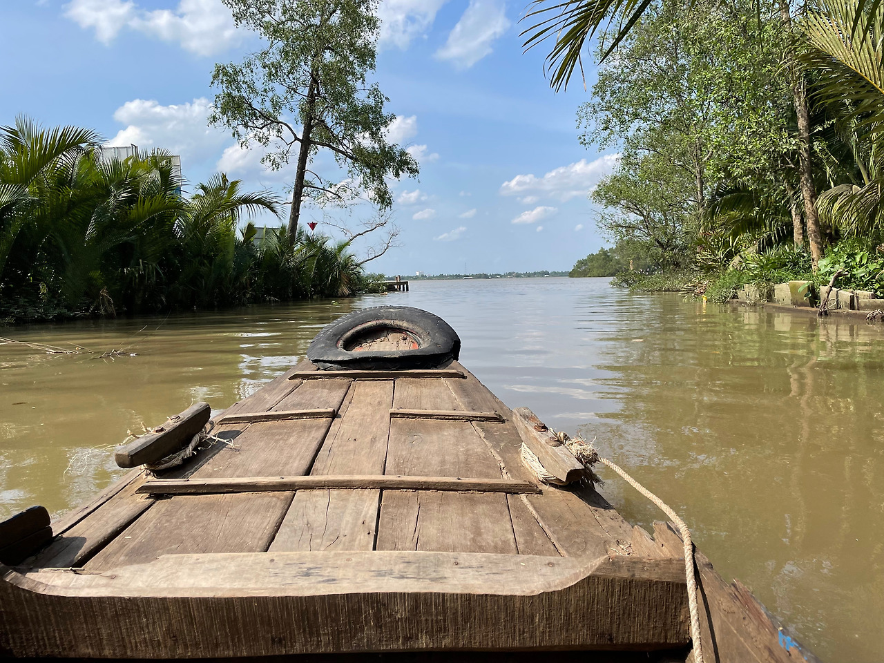 하이라이트는 메콩강 자체다. 메콩강은 어느 곳에다 카메라를 대도 아름다운 그림이다. 불투명한 강물과 구름 가득한 하늘의 경계가 명확한 그 풍경 속에 노를 젓는 배와 맹그로브가 군데군데 주인공이 되는 이 그림은 한 폭의 아름다운 유채화 같았다. 푸르고 맑은 강과는 전혀 다른 매력을 풍겼다.