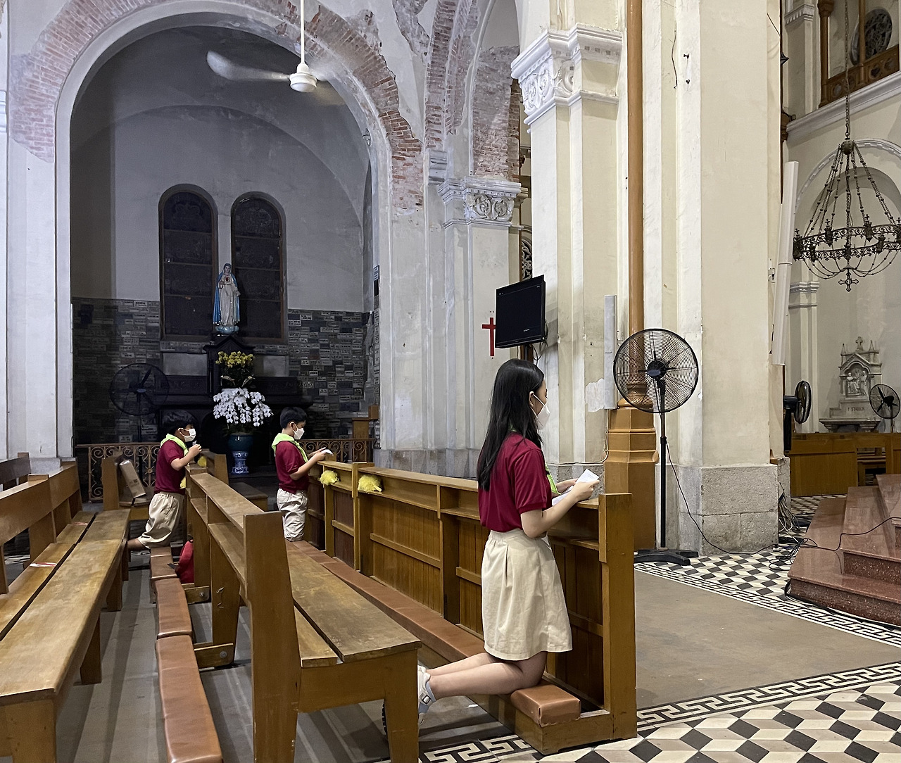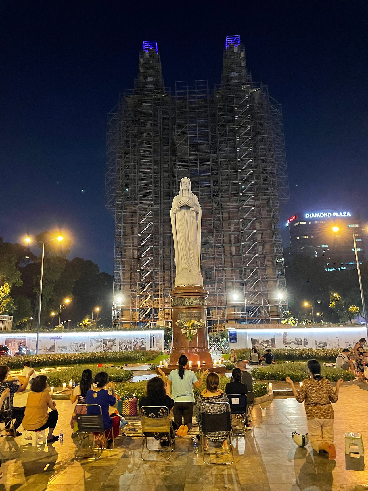근처 공사 중이라는 노트르담 성당 쪽으로 걸어보았다. 오토바이 행렬이 장관이었다. 그리고 도착한 성당. 아직 외부는 공사 중이고 내부만 돌아봤다. 성당은 유럽의 성당과 비교해도 손색이 없을 만큼의 무게감과 우아함을 풍긴다. 물론 유럽의 거대한 성당의 화려함에 비교할 수는 없다. 하지만 베트남인들이 막 미사를 마친 후의 온기와 언뜻 보이는 신부님의 뒷모습만으로도 호찌민의 노트르담 성당은 성모님을 섬기는 거룩한 곳임을 보여주고 있었다. 아직 완성되지 않은 외관이지만 프랑스의 노트르담 같은 분위기를 풍긴다. 야외에 서 있는 성모 마리아 앞에서 두 손 모아 기도하는 분들을 보며, 어디서나 겸손한 기도는 아름답다는 생각을 한다.