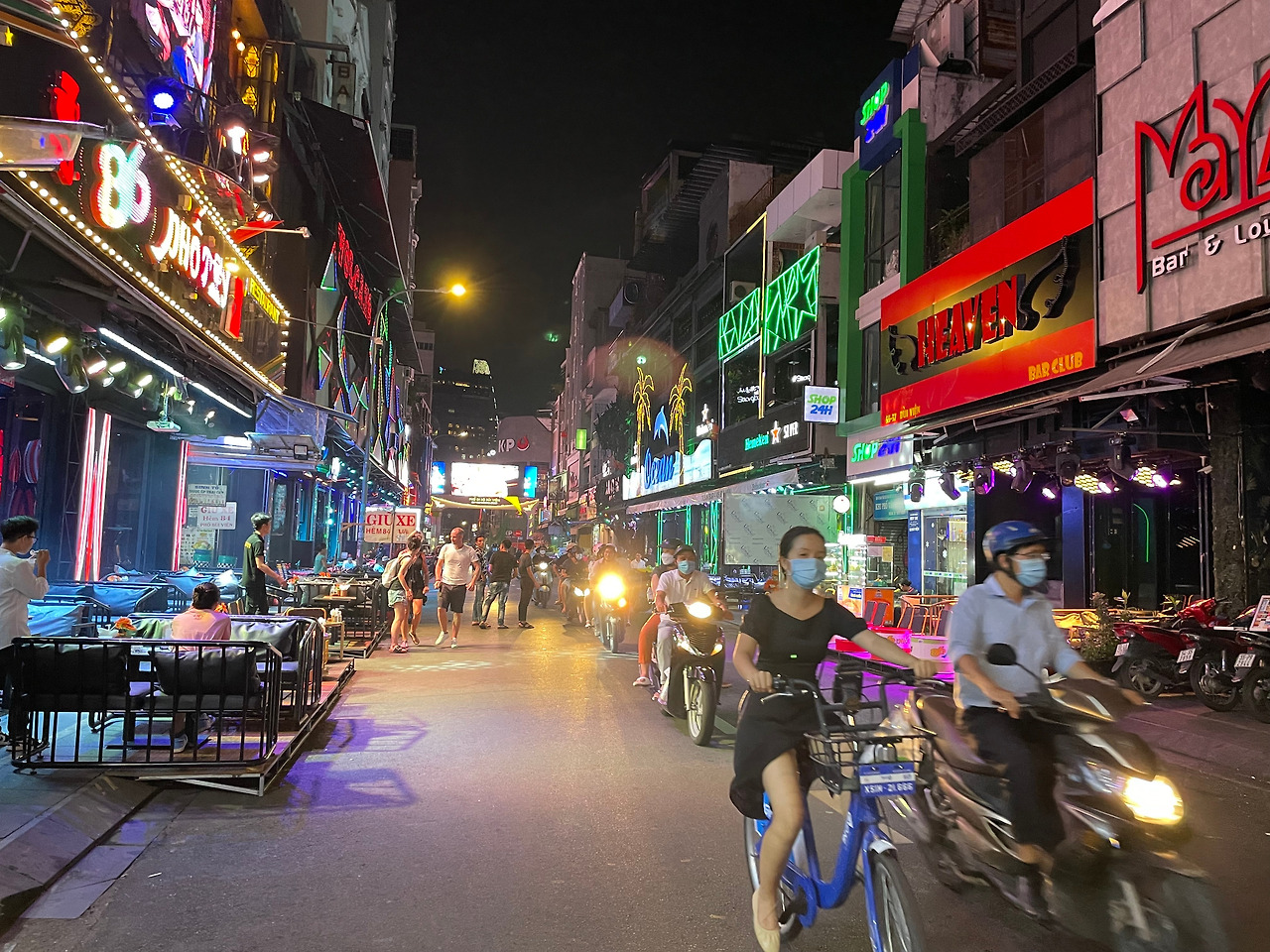 저녁엔 여행자 거리, 부이비엔 워킹 스트리트를 다시 가보기로 했다. 쌀국수와 코코넛 주스를 먹고 걸어보았다. 이제 곧 세계에서 놀러 온 젊은이들을 받을 준비에 바쁜 사이공 여행자 거리였다. 아침과 낮에 본 여행자 거리는 가라! 밤에야 태어나는 여행자들을 위한 진정한 여행자 거리 포스라 할 수 있다.
